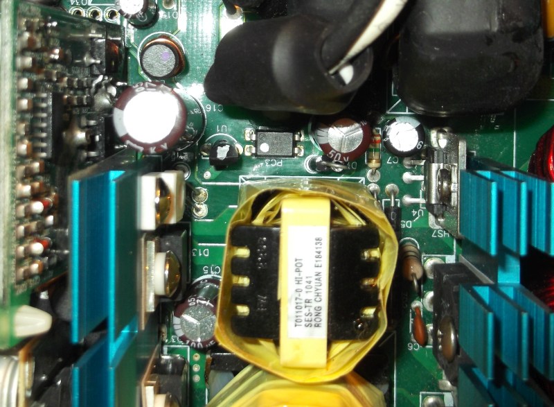 The owner attempted to repair the psu by replacing some caps... then putting the originals back.