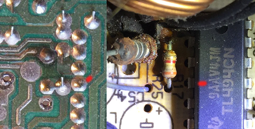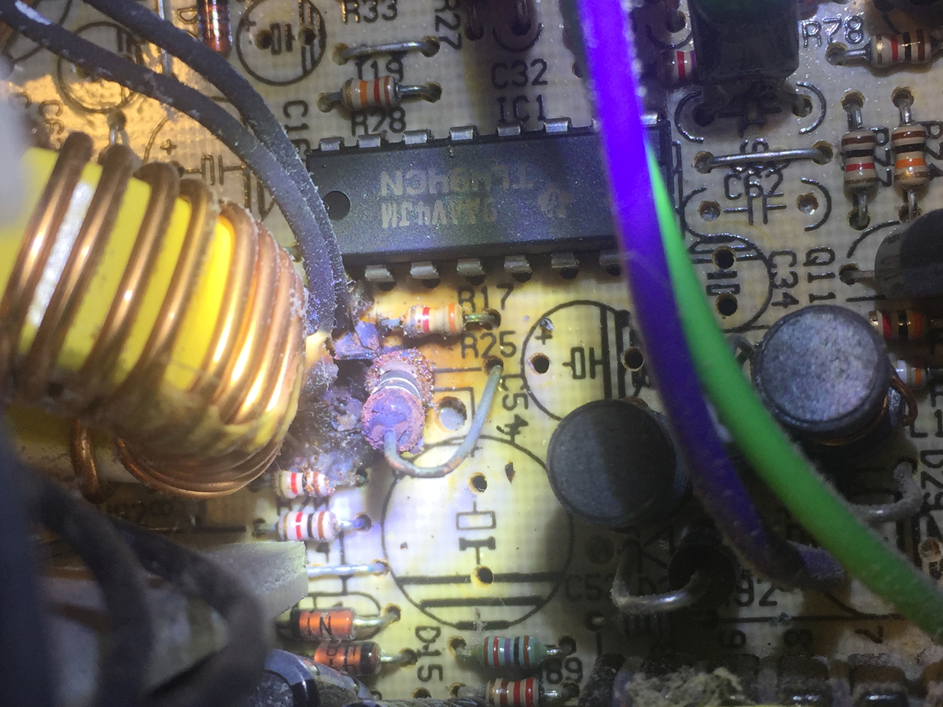 I know many folks on this forum warn against conductive glue and suggest removing it immediately upon site. I'm here to vouch and say these people know what they are talking about. To be more accurate, the glue isn't intended to be and doesn't actually start out conductive. It gets conductive as it is heated by components that get hot. The glue starts out to be a light tan color but as it is exposed to heat, it gets darker and darker until it is a dark brown. I have found that it becomes conductive at the point that it reaches a light brown color on darker.