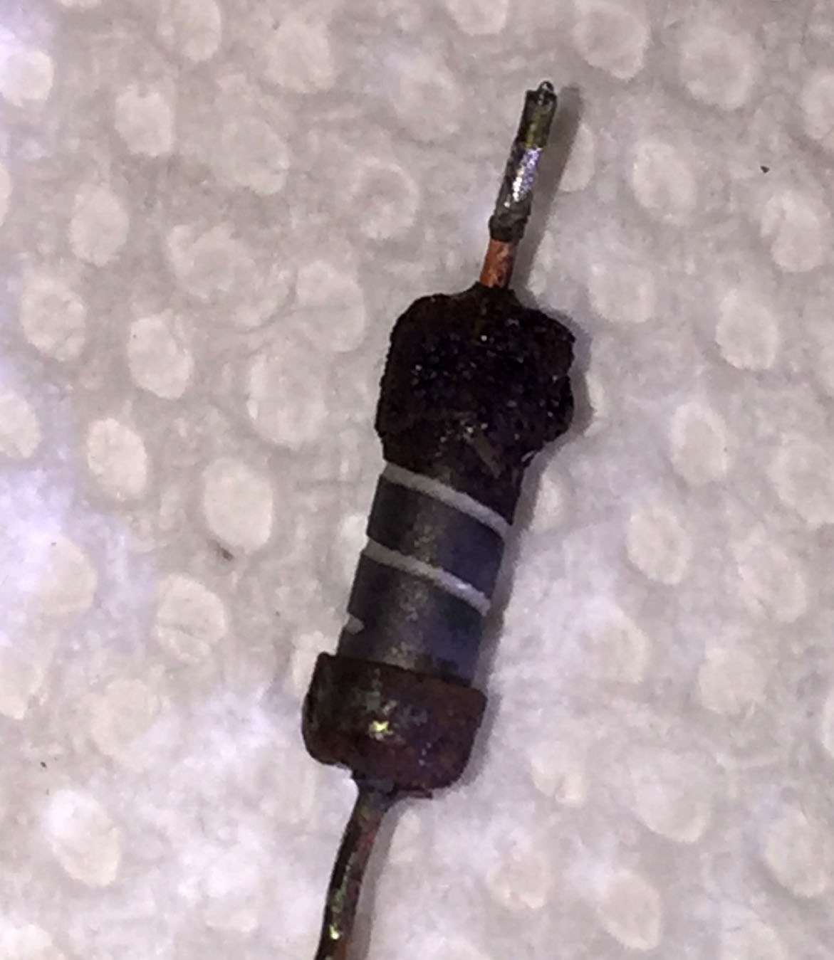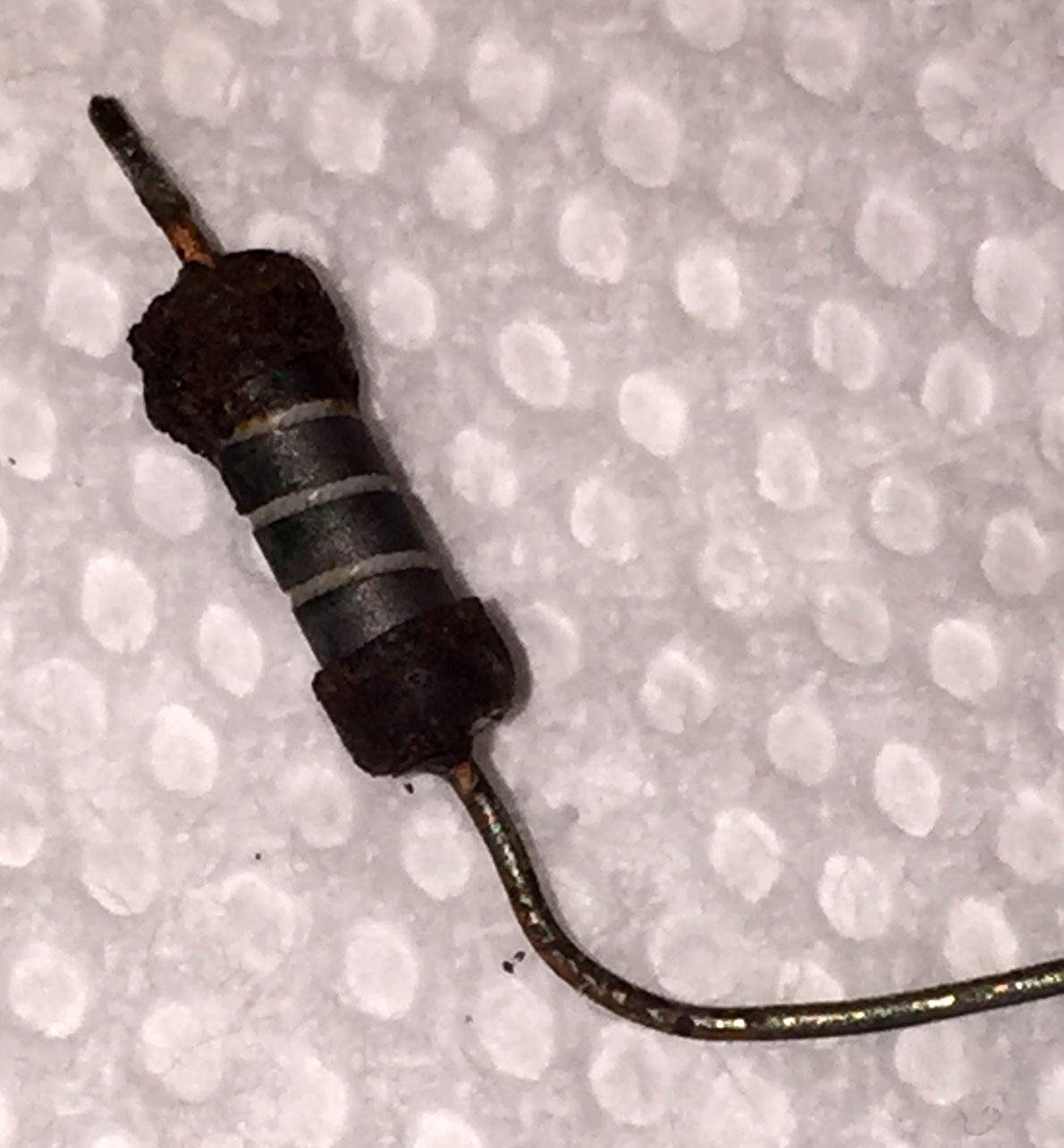 I did some sanding on the resistor. There was definitely some glue around one edge of the spiral - there still is, actually. The results? 2.2 MOhm! It looks like it would take quite a bit of work to get the thing completely clean - and even then, I am not sure that I wouldn't do a bit of damage to it. I may need to up the grit if I proceed. Probably will just order a 1k and 1.5k resistor...