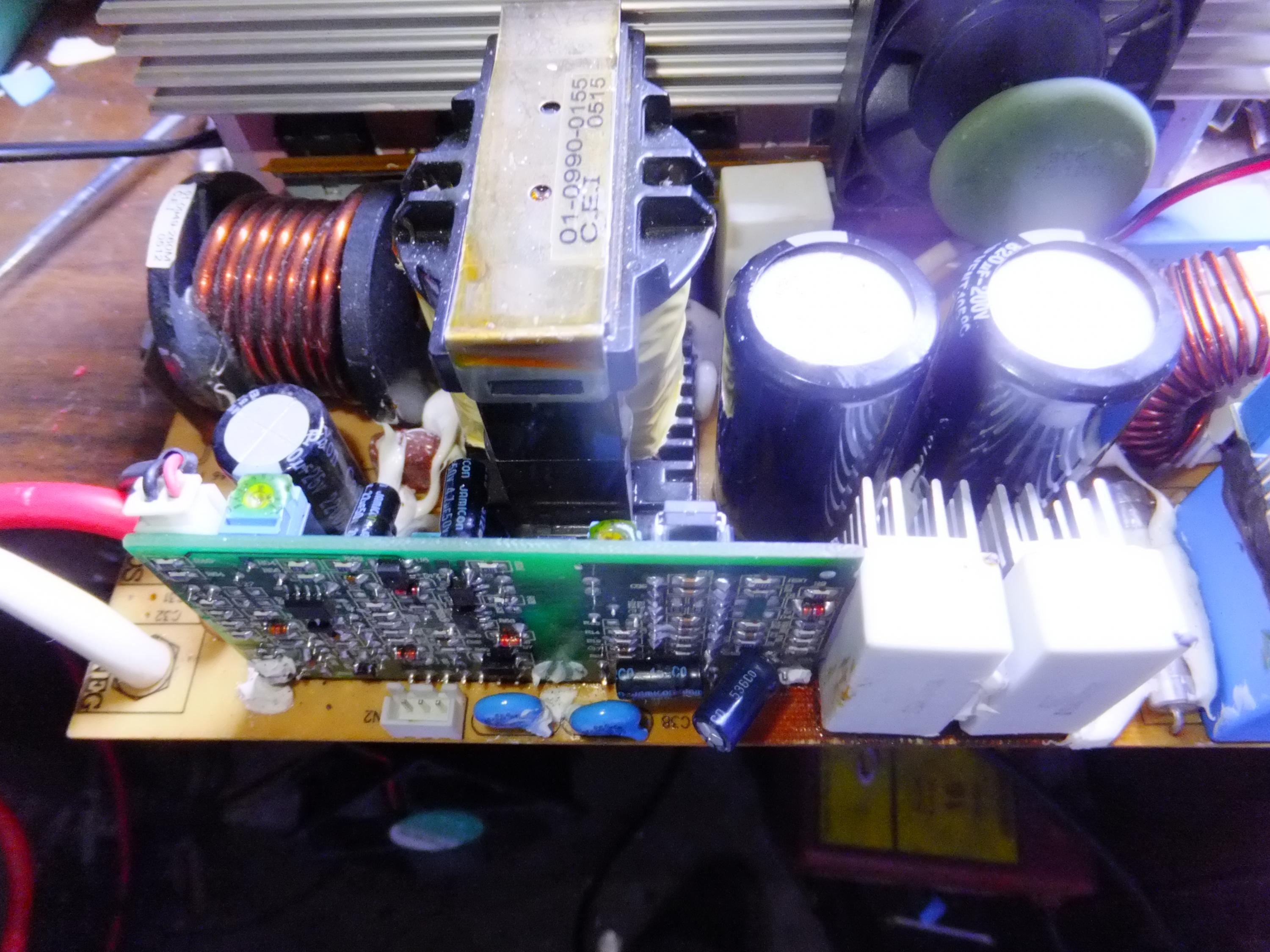 I have this WFCO Camper converter. You plug it into 120v and it puts out 12v 55 amp. After replacing all the bad parts the unit does not work, output voltage is 0.00 volts. There is 2 white ceramic resistors that put out a lot of heat and they burn up all the parts around them. So the main parts to burn up are the capacitors. When I just change out the caps to unit works but the KA3846