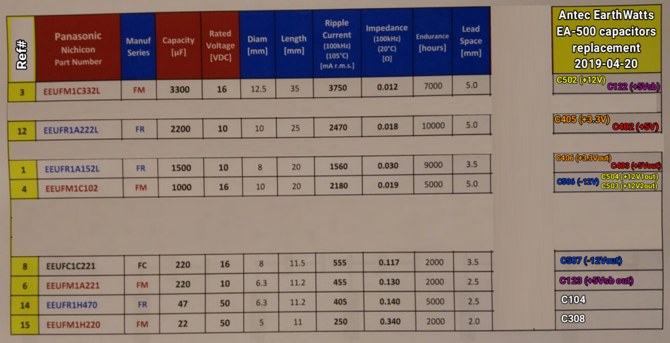 Re: Antec EarthWatts EA-430 and EA-500 – an easy bad caps fix
