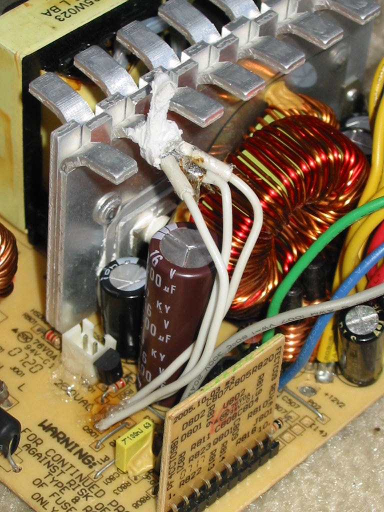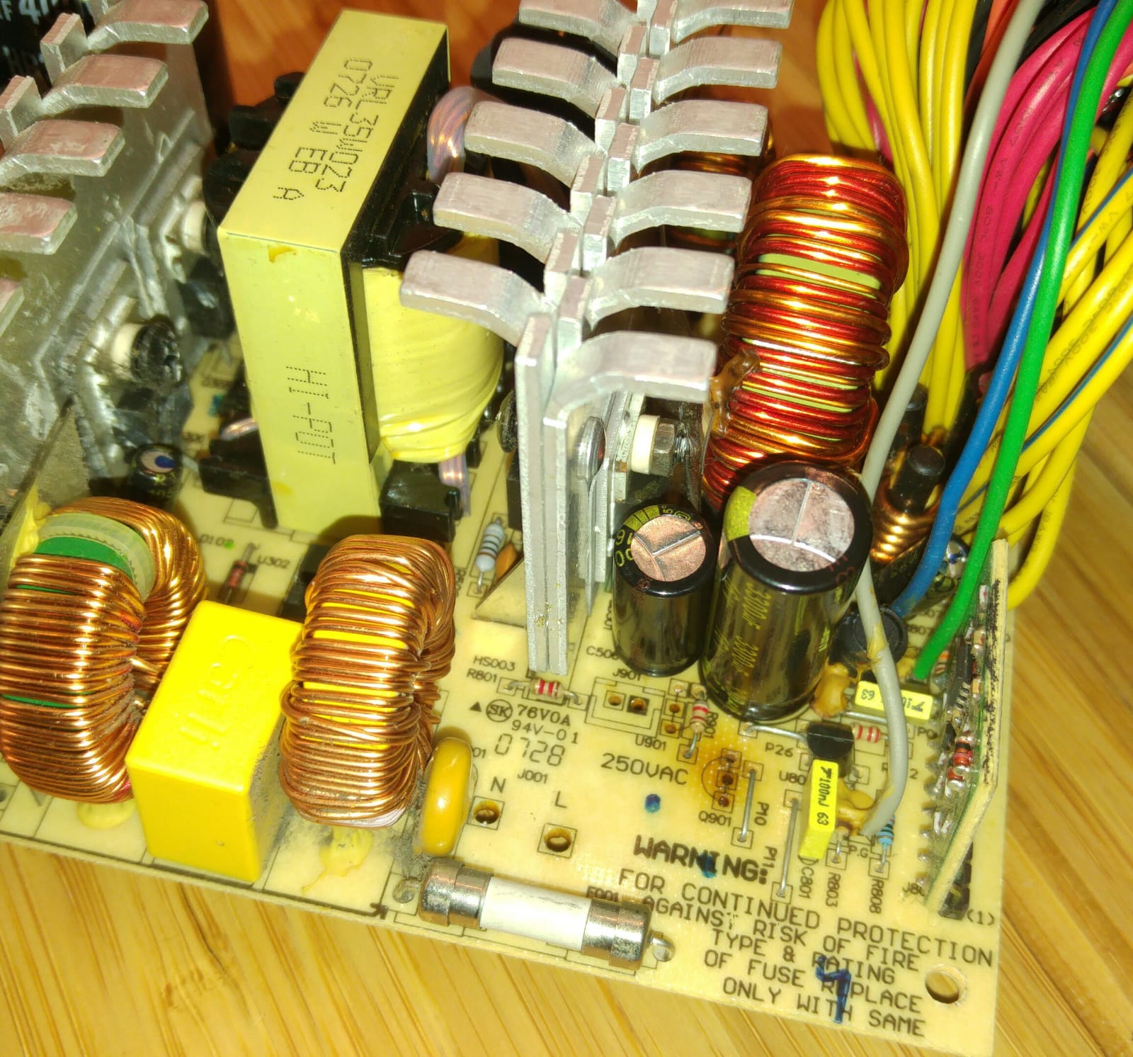 Needless to say, I tested the PSU on its first power-up with a 500 Watt heating element in series with the AC input, just in case I goofed up somewhere on the “repair” of the APFC inductor. However, all was well and the PSU worked fine.