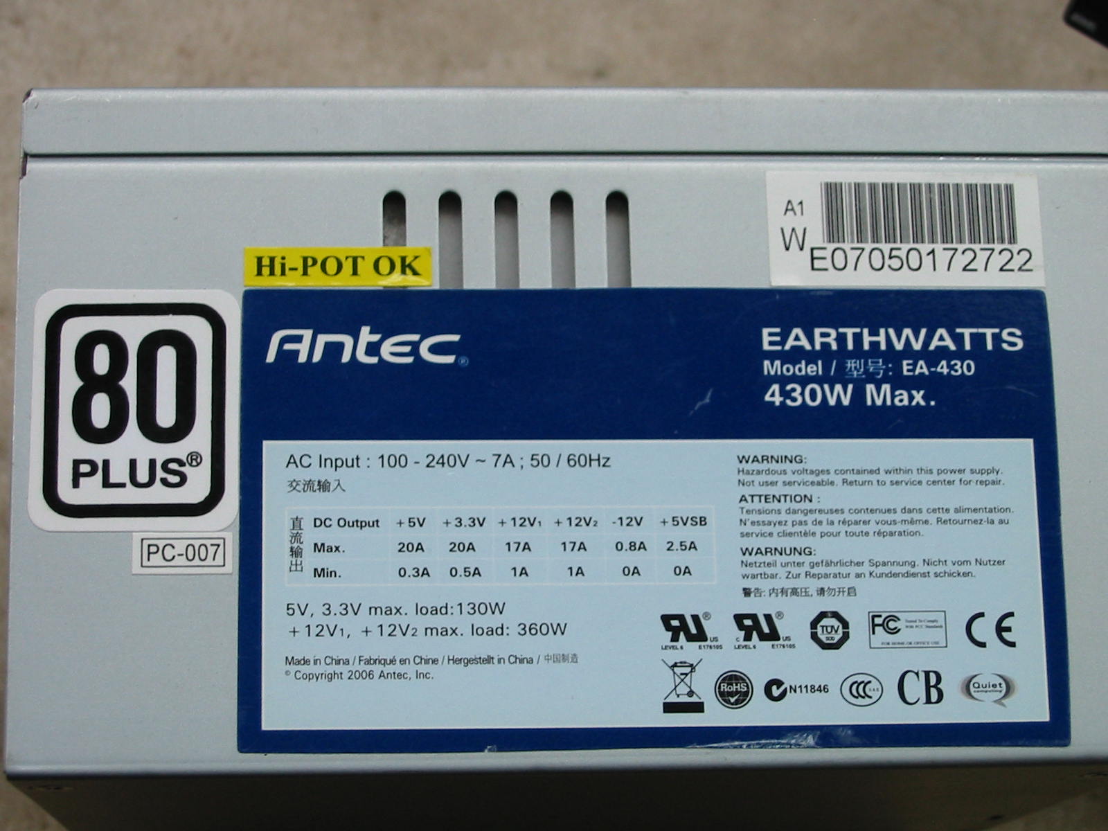 Hmm… looks like I never really posted pictures of the EarthWatts EA-430 power supply that I've been talking about in this thread.