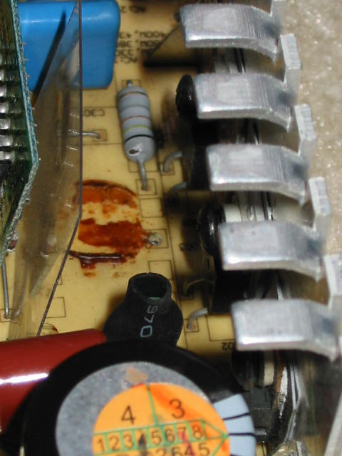 I also found that as well as bulging capacitor, there is unidentified coil which has residue all over its surface