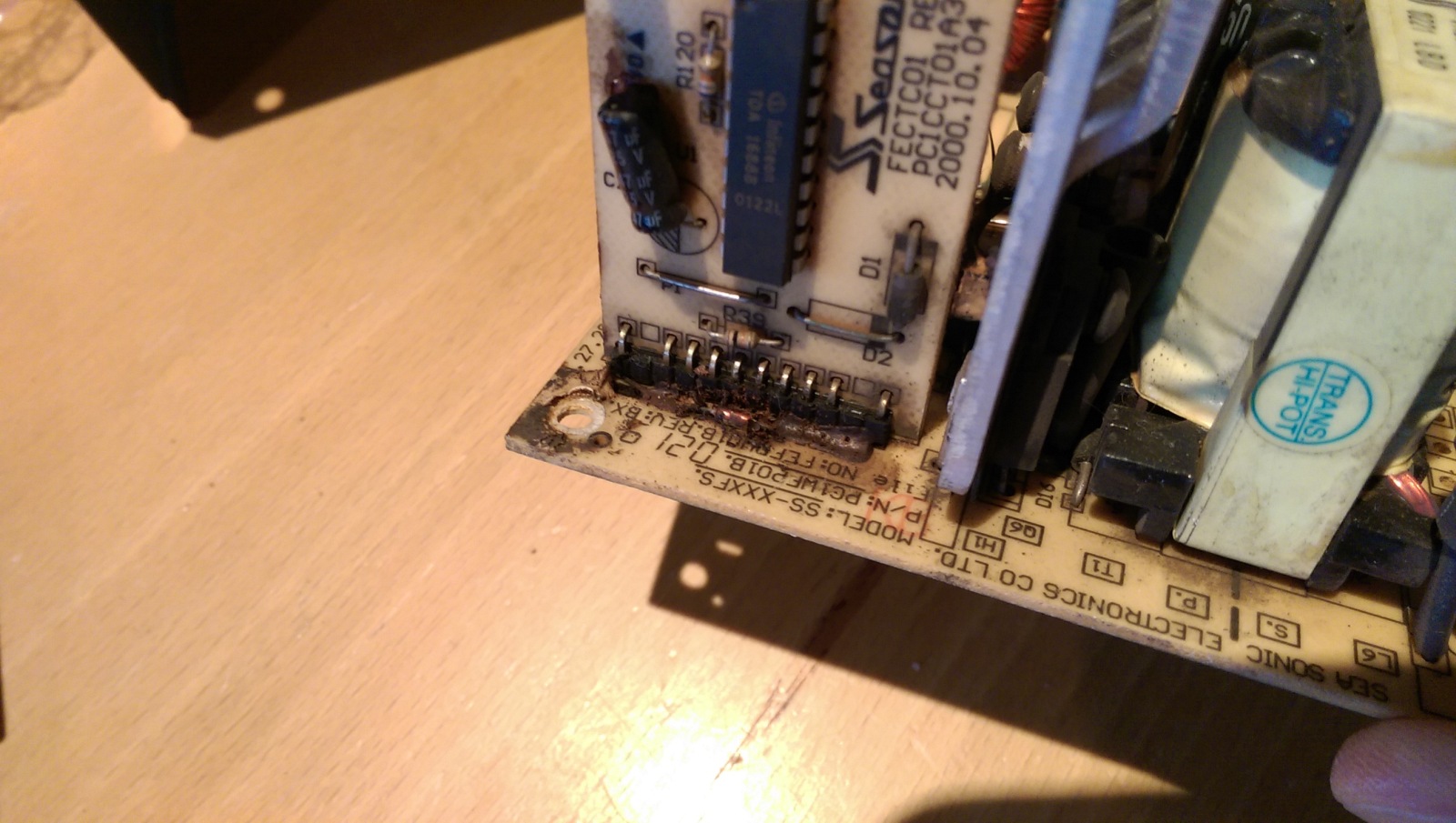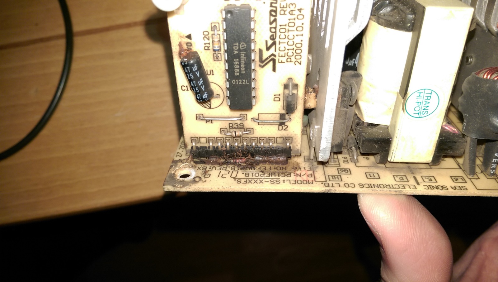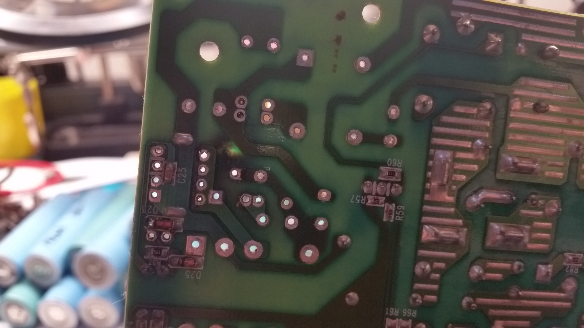 Like I wrote in that thread the traces are in good condition and the UPS was powering up and providing protection until the batteries no longer held a charge. Because this board is hard to get a replacement, I was thinking of repairing the section that got damaged by removing the components and filling with epoxy resin and re-drilling the holes. Also I have a stock of capacitors that if all works the ones on the board will be replaced.