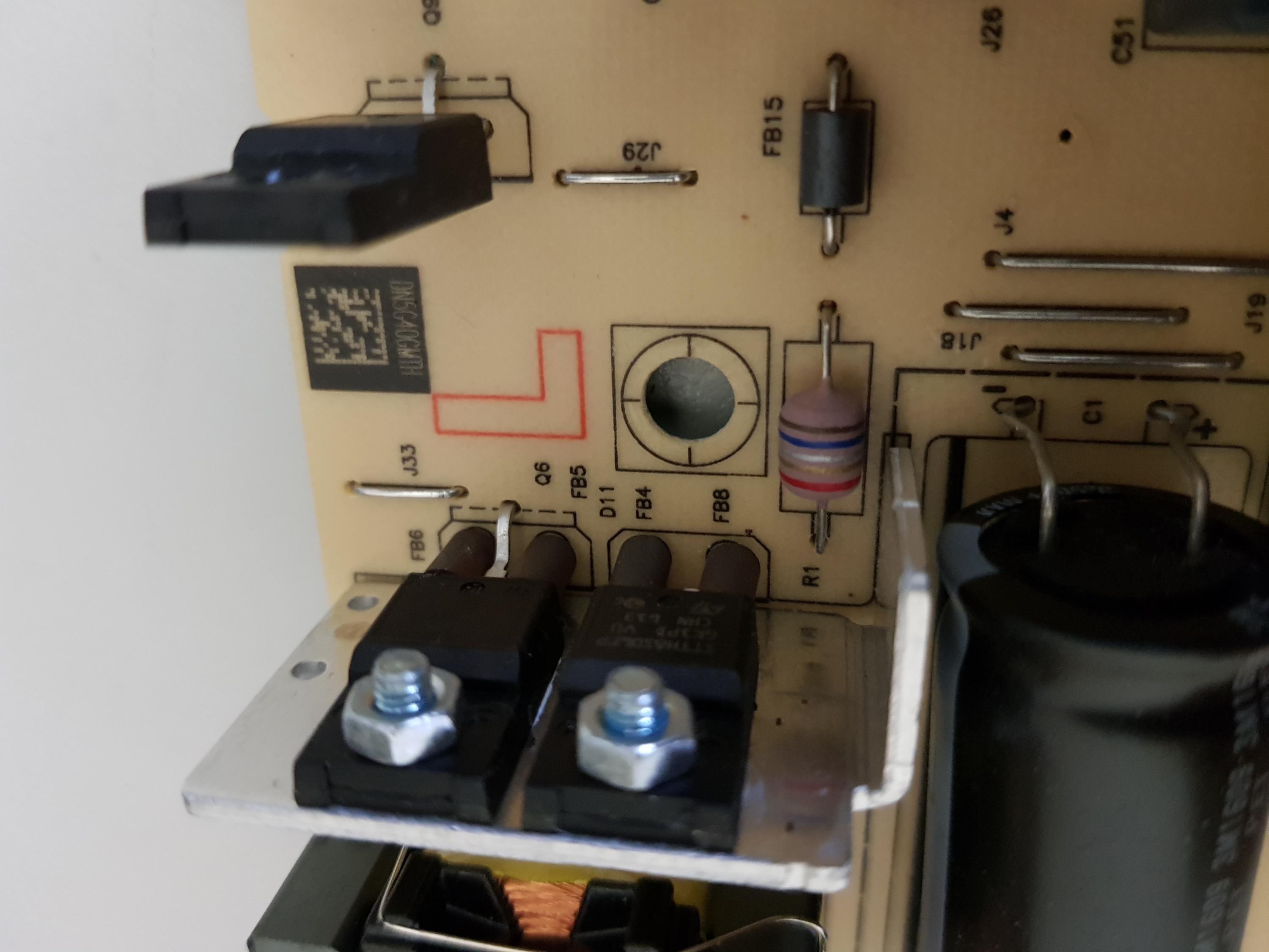 It had a small amout of cockroaches in it from the previous owner (fortunately they were gone when I got it) and they have shorted the PSU blowing the fuse, there is a small amount of roach debris on the output end of the board but no visible burns or damage anywhere, it looks physically ok.