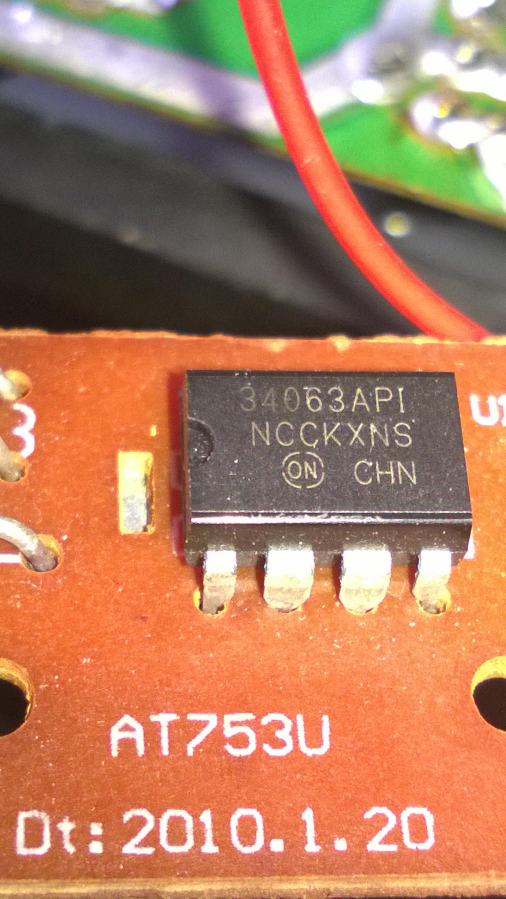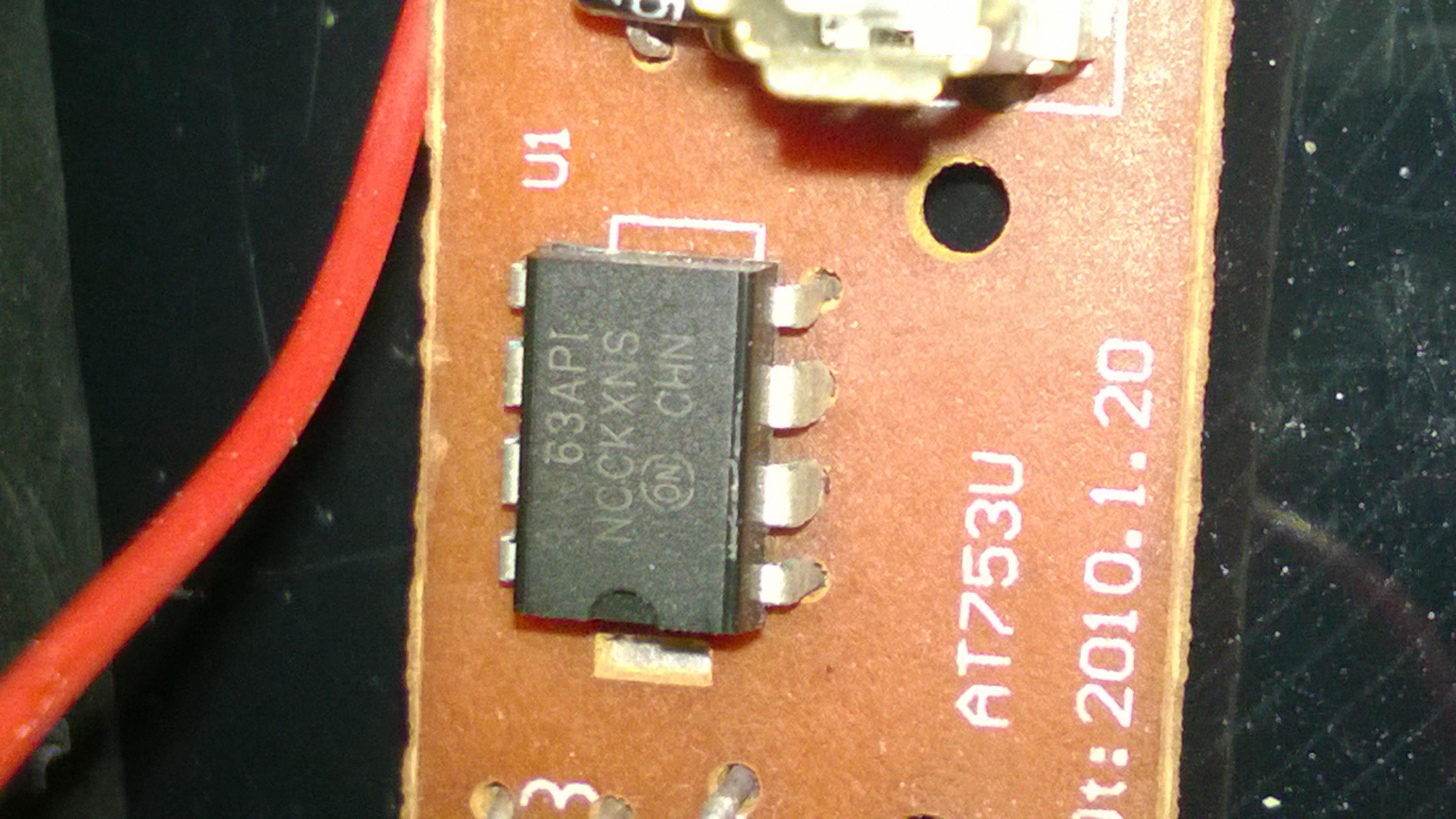 Yes, the IC has written on a series of numbers and letters: 63API before the "6" there are what seems to be three numbers which are very faint. I looked up the visible part of the code and found only a site selling ICs with errors "save buying IC with typos" It says. Maybe this is one of those since the first numbers are not readable so easy. The most I can make is a "300" but it could be wrong, below is a picture, I'll try to get the complete code later when I get home, thanks.