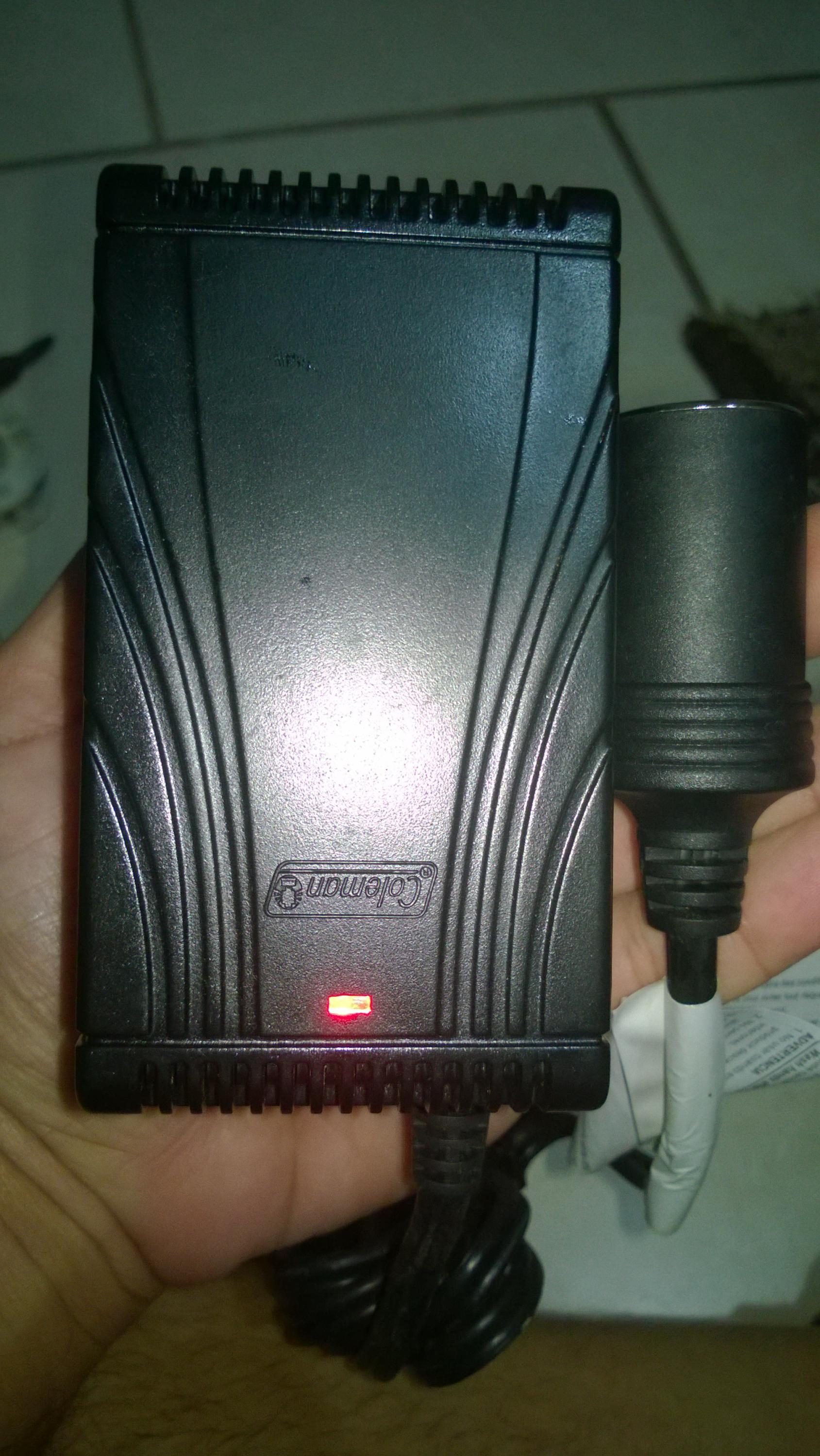 Now, yesterday I put back together the Inverter and found it showed a blue/purple light in the inverter's brand logo but then it turned off on itself and toggling the switch on or off showed no change. Then I tried unplugging and plugging back and the only two LEDs, purple/blue on the logo and the status led, both flash the moment I plug the inverter. I'm not plugging directly to a car lighter socket, I'm using a home to lighter plug converter. It's a power converter to convert 120v AC to 12v DC (5.25amps) and noticed that, as soon as I plug the inverter, the adapter's status light dims and starts buzzing and the inverter starts buzzing as well. I can say the the buzzing in the inverter comes from the general area around the transformer.