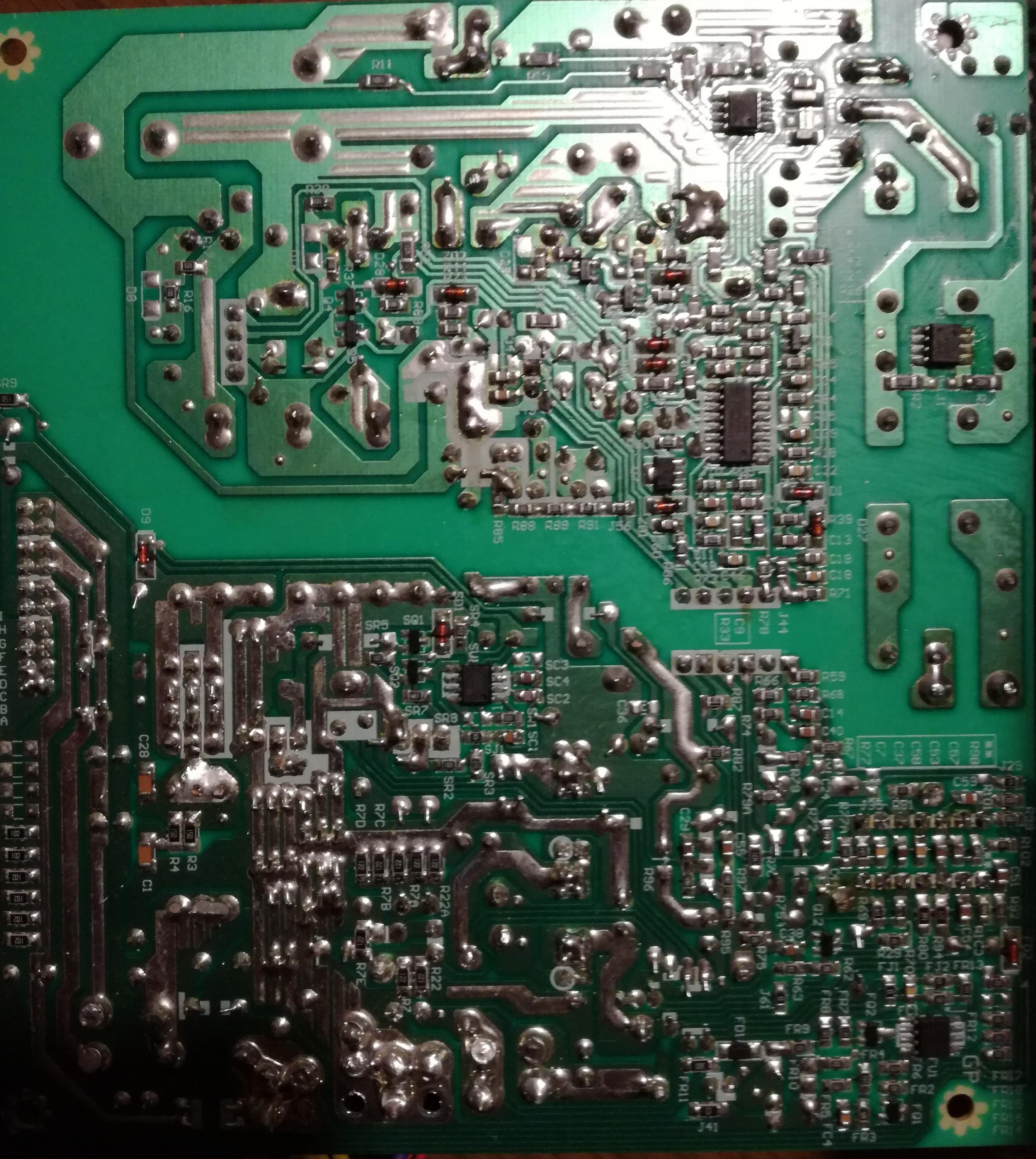 Got this from my kid with a fault on primary side. Main power supply here is AC 220V. All caps were Ok, testing with 2 series lamp of 70W each, got a bright lamp . Checked main heatsink one by one with my component tester and found one 3 leg buddy MDP18N50 that passed away. Got same replacement after a week, tested, short was gone, now I got 310V on primary.
