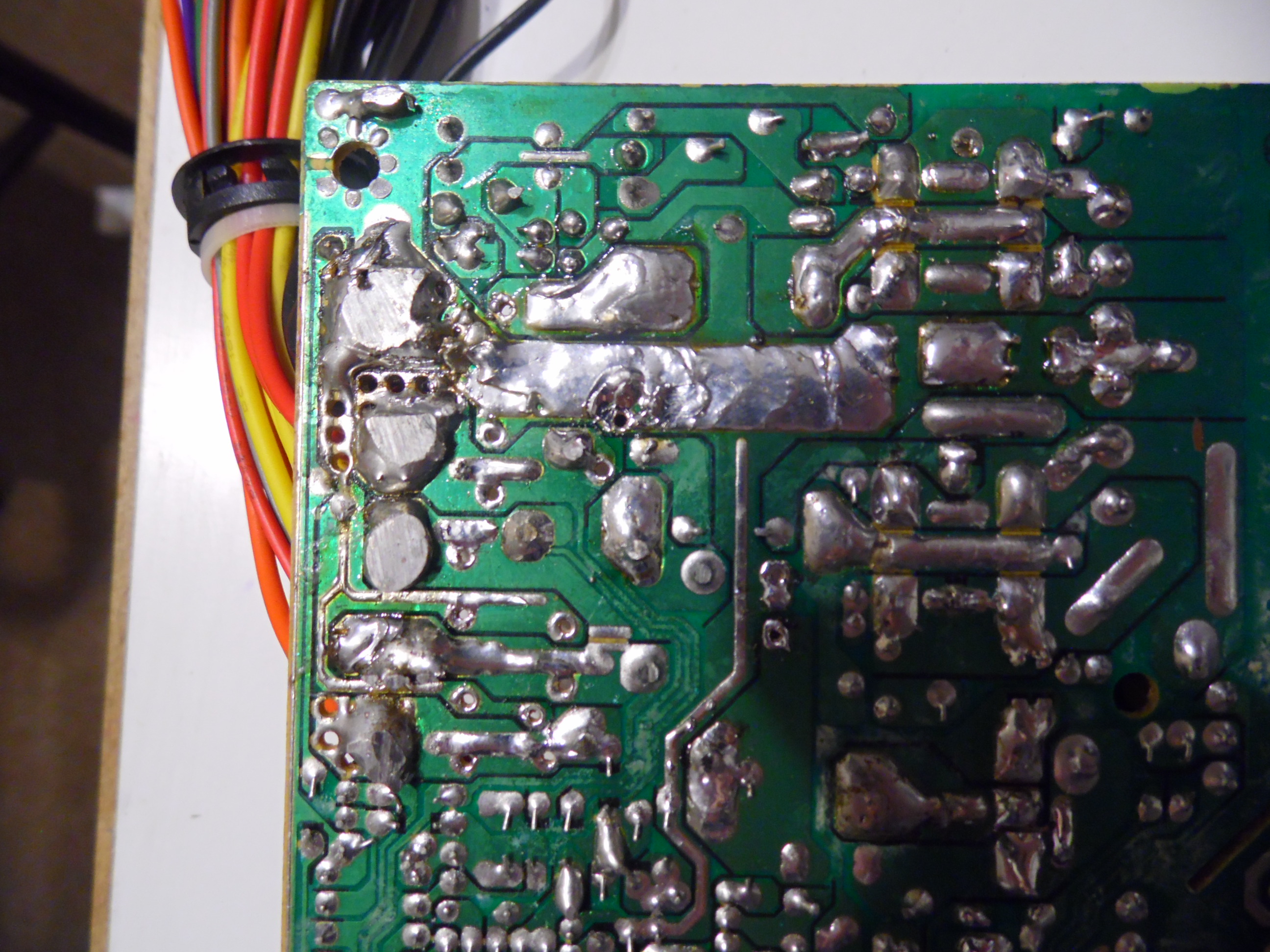 That said, because this is a half-bridge PSU... you may also encounter problems with the Schottkies on the 12V rail (generally due to slower recovery time.) Also, if you happened to use this PSU on an old PC that draws power for the CPU from 5V (like a socket 462 motherboard or some socket 478 boards), the 12V rail with the Schottky diodes could go too high (out of spec).