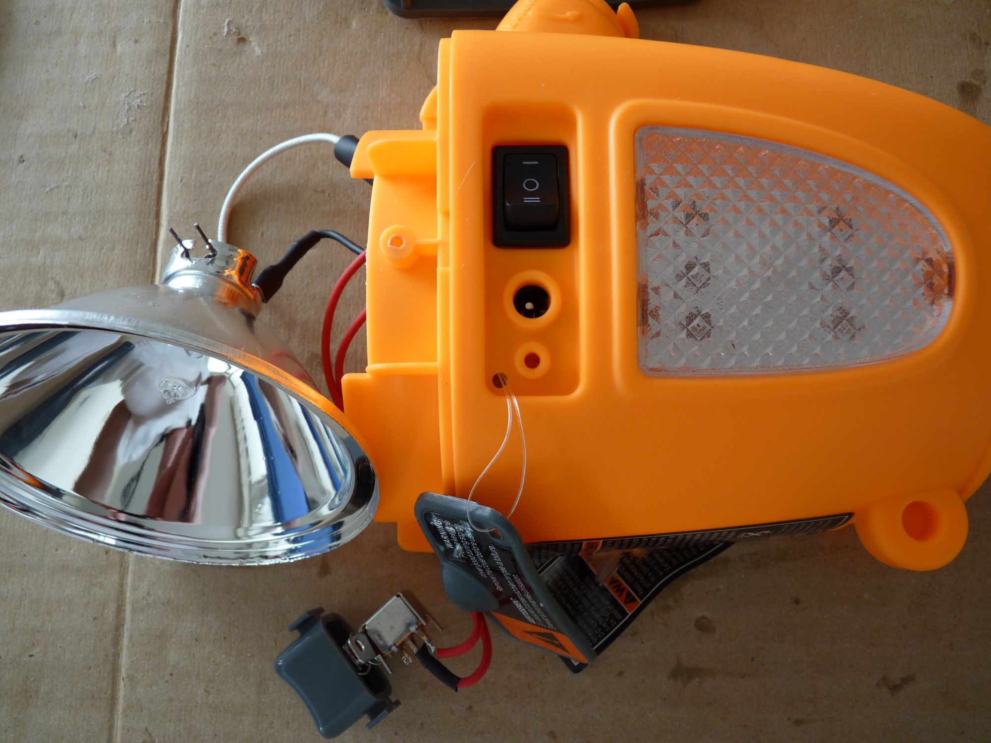 I've an old Canadian Tire 37-9452 Halogen Spotlight, which seems to have 2mln candle H3 6v 25W halogen lamp, powered by lead battery SD620 6v 2Ah (cycle 7.25-7.45, standby 6.8-6.9 Yuyao SanDing Electric Ltd, size 3x1.85x1.5 inch), which is charged by the power adapter TL-9B 9V 300mA.