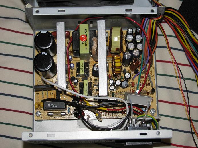 And here's an overhead shot of the whole thing, you can see the whole input filter now, including the extra X cap I added to the power cord socket