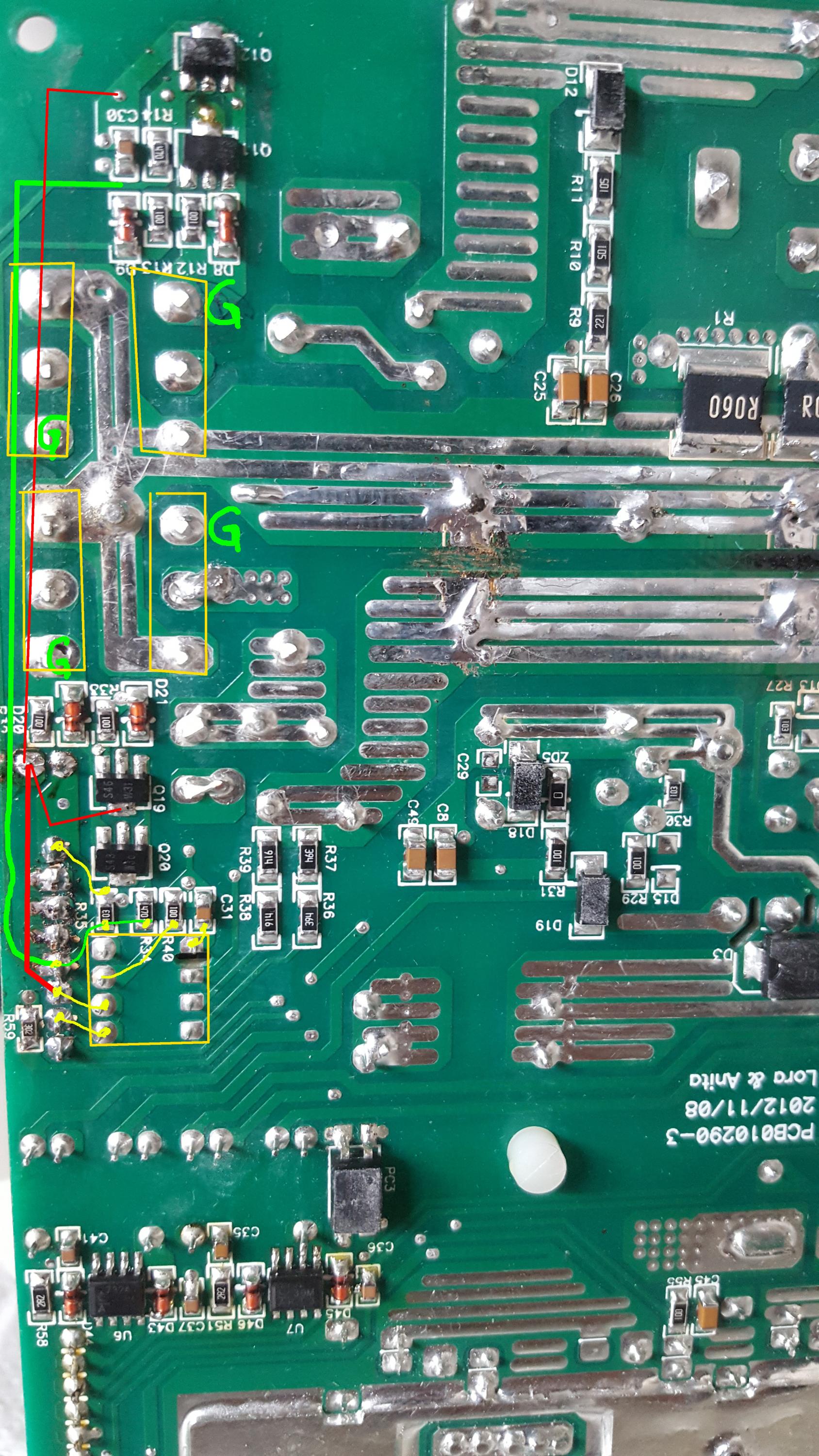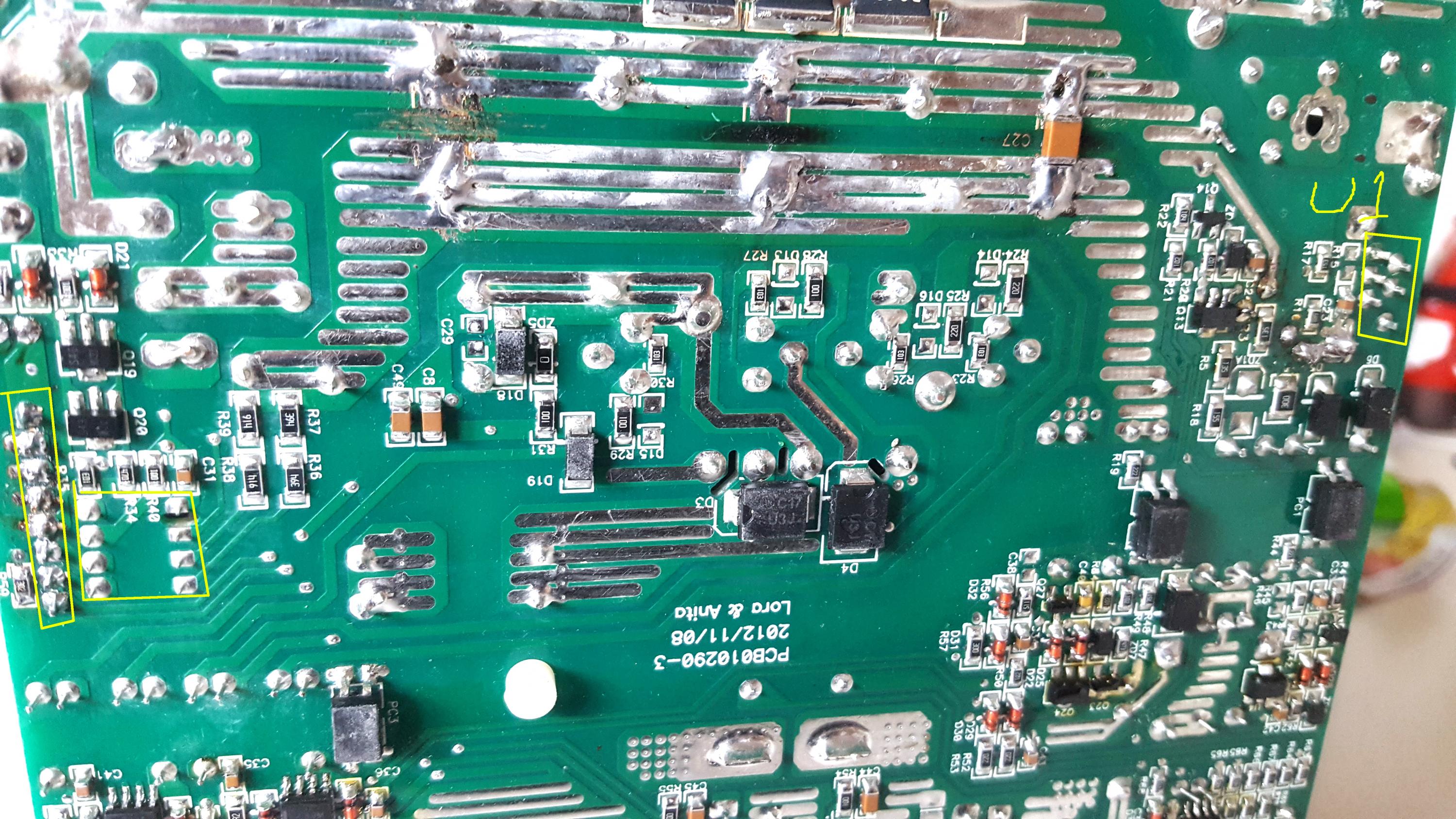 I checked the standard things - caps are OK, switching trans. also seems to be OK, the rectifier seems fine...