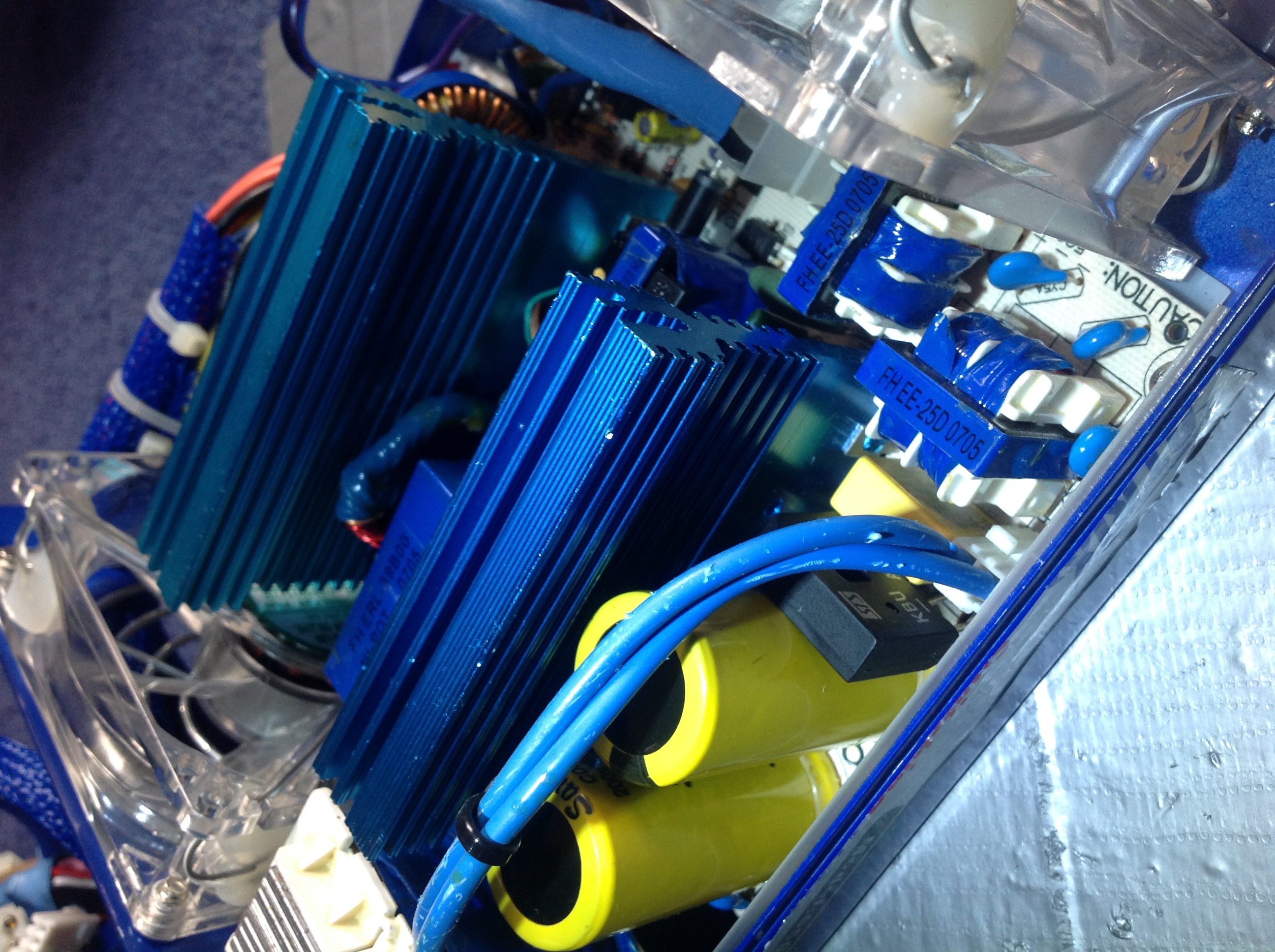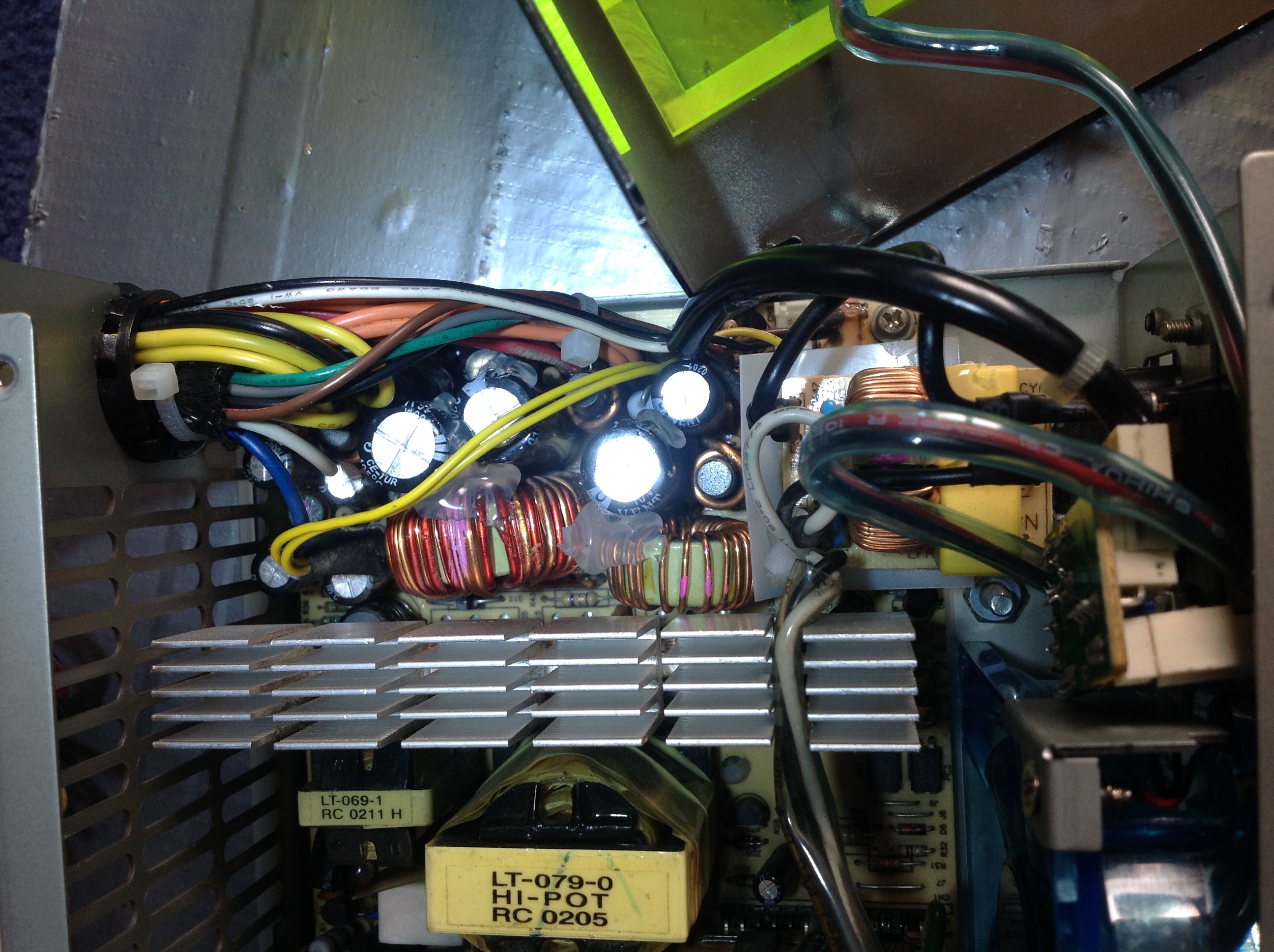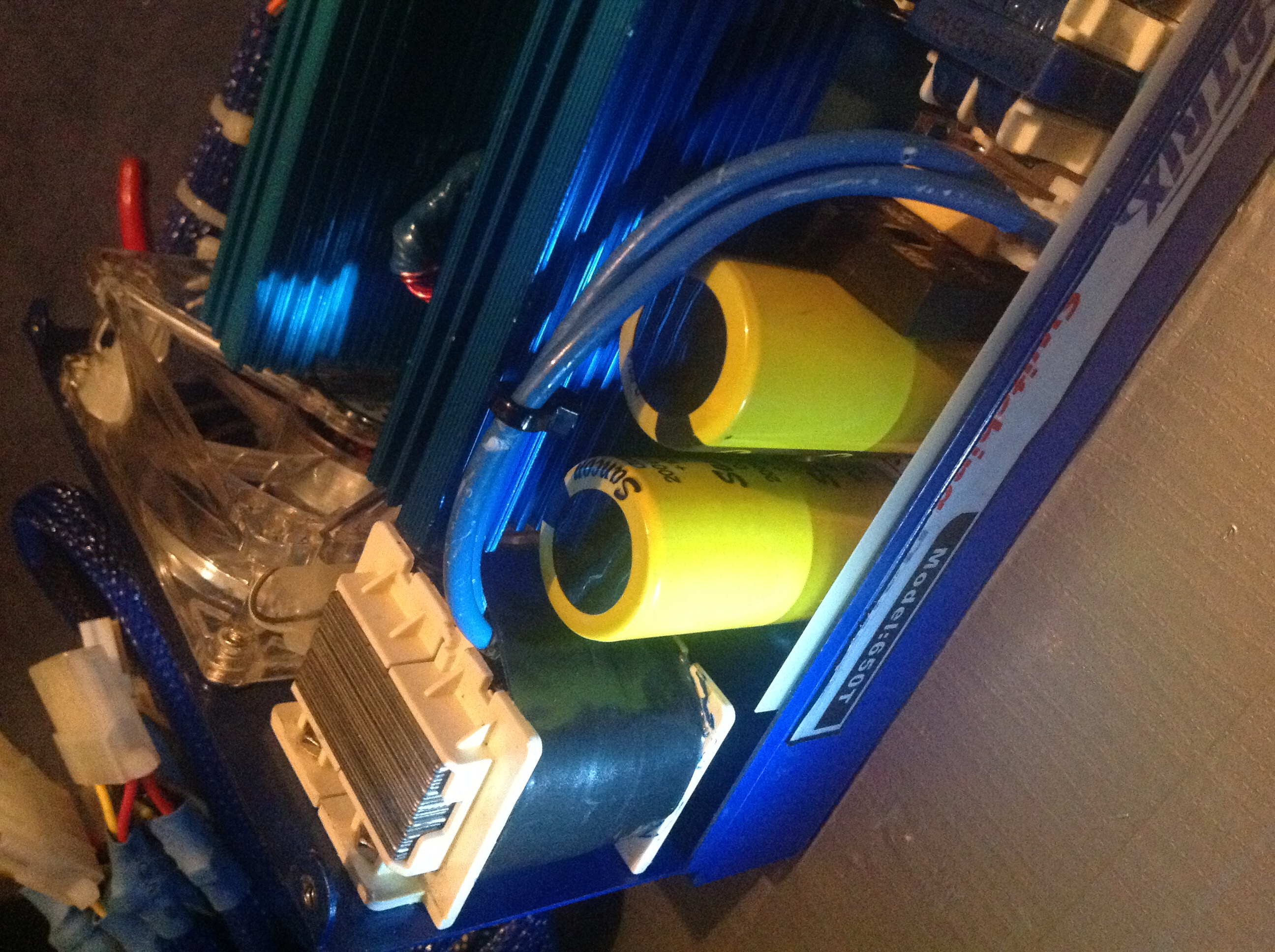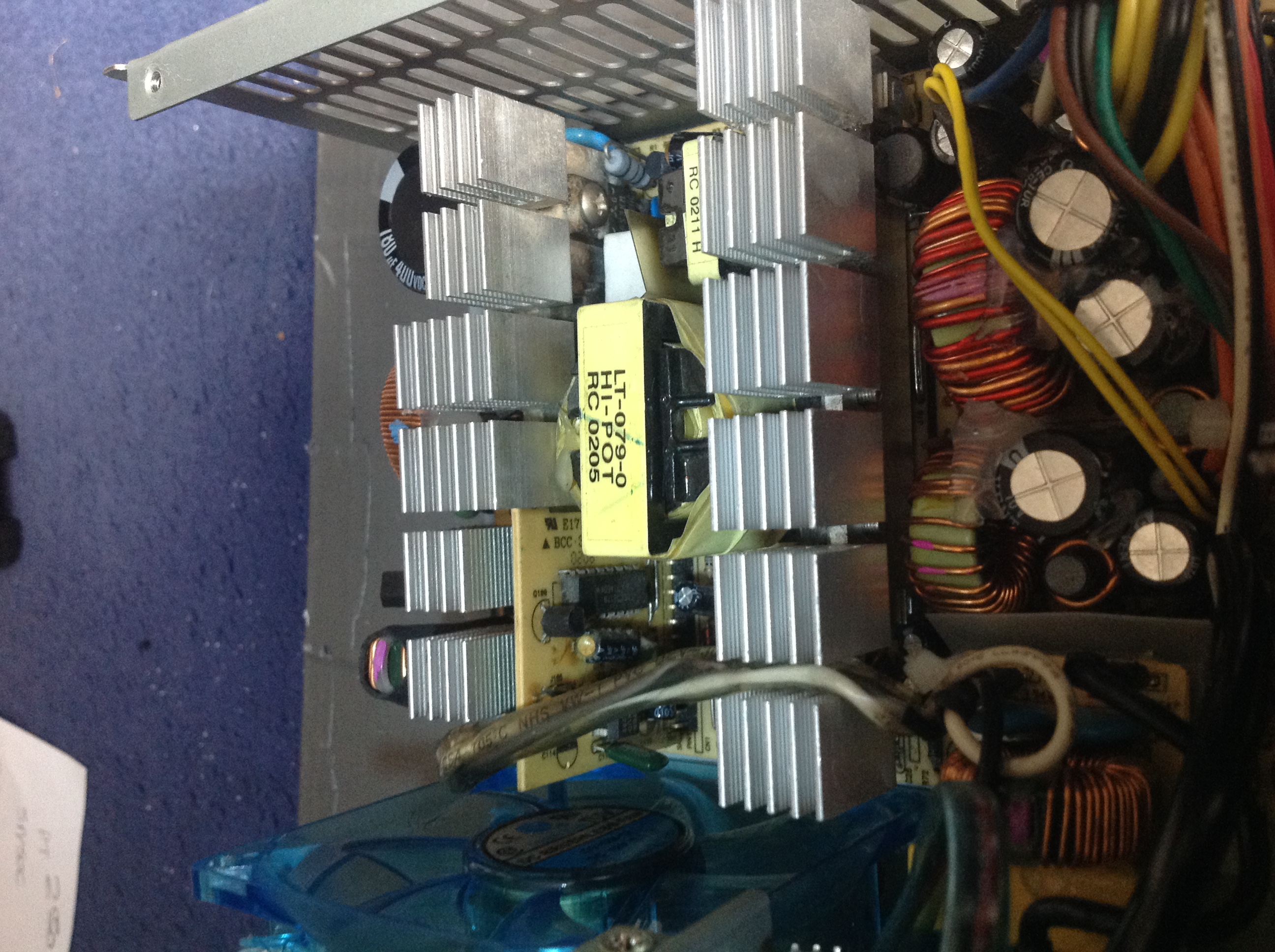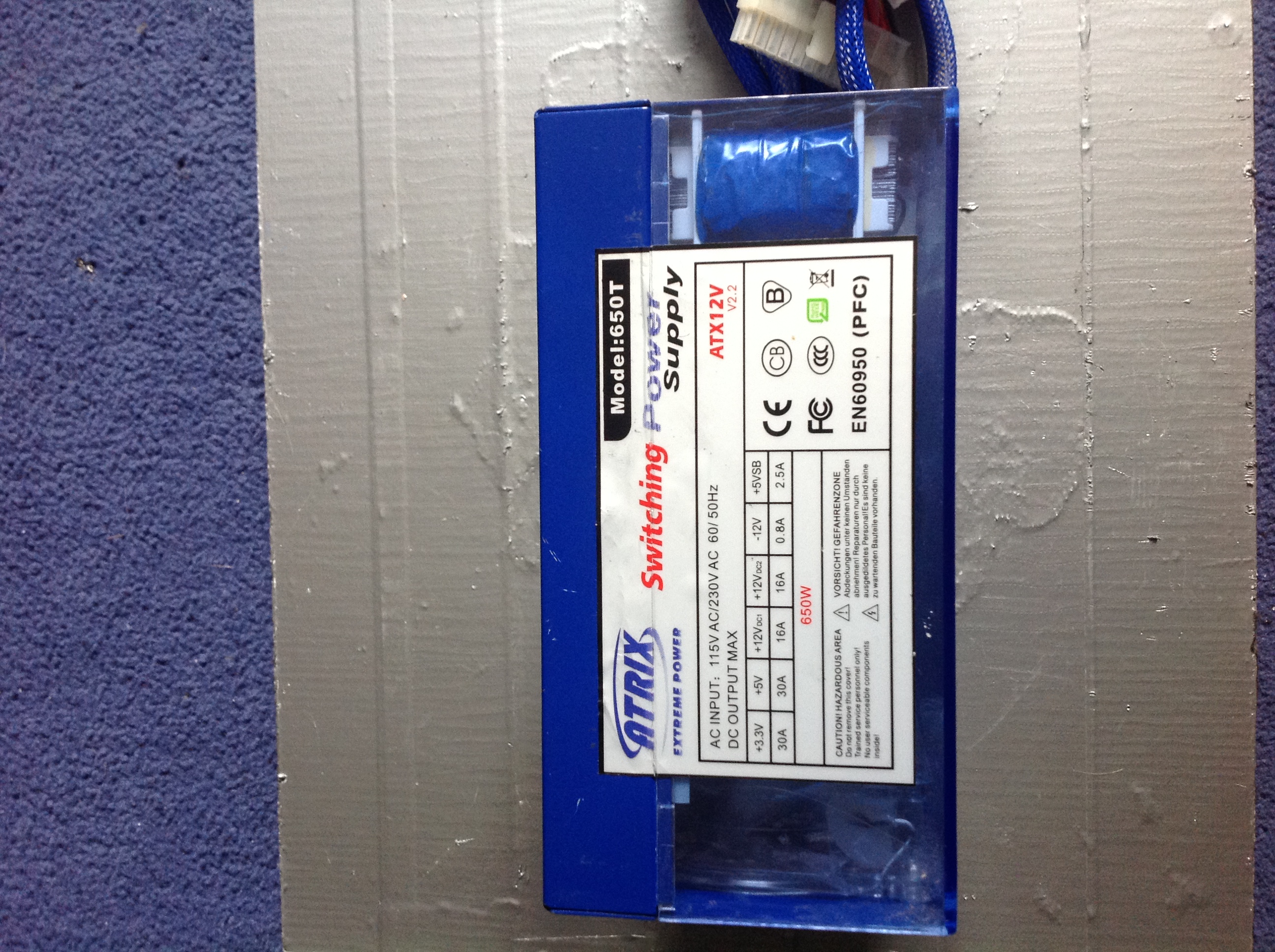 This is the atrix 650t, 650w rated psu of course it isn't 650w I know their game with this one make the user think that the psu is good by its looks and put them off the quality of the internal psu board, it can do around 400w on a good day. It has a clear Polly acrylic case with two 80mm led fans that can be controlled by the potentiometer at the back, its of an ok quality I recapped it due it having sancon outputs causing bad ripple, Im sure I will find some use for it in a low end rig some day.