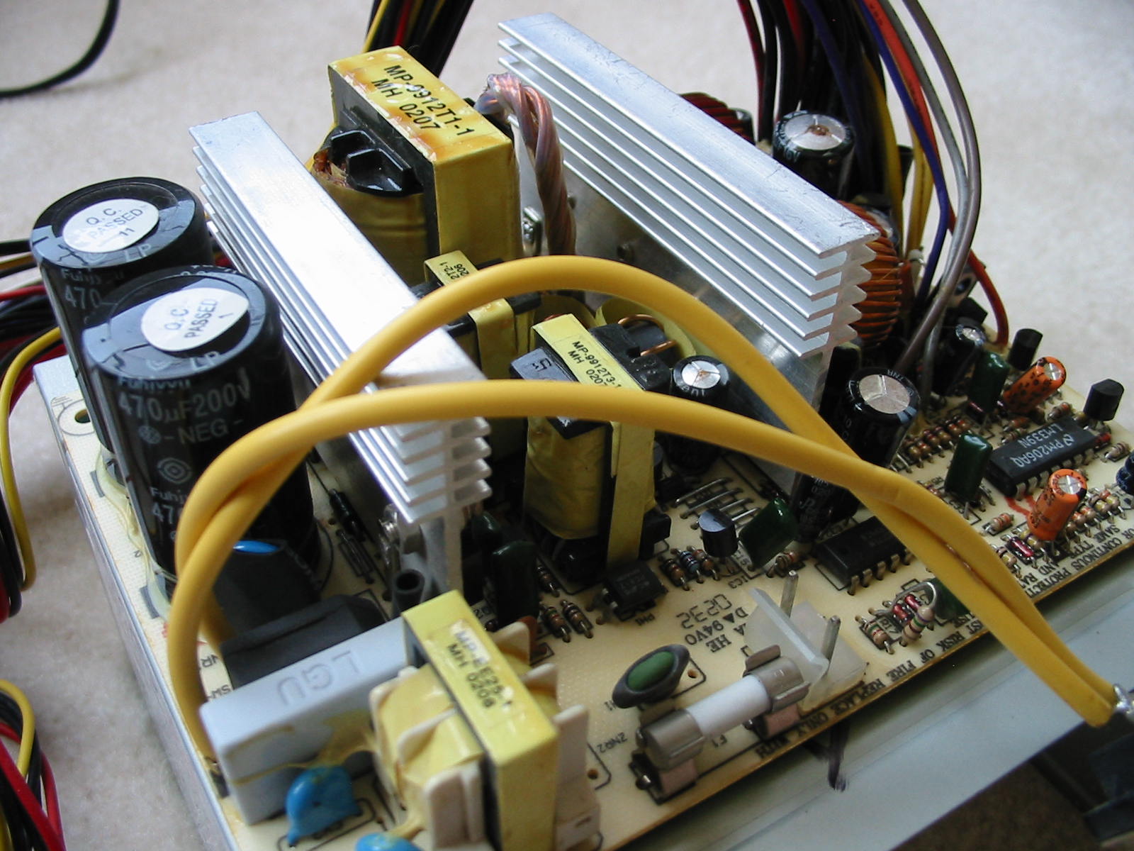 - bottom-most board (4th photo) seems to be one the secondaries (or possibly some DC/DC business going on), chock-full off fat Nichicon PL's