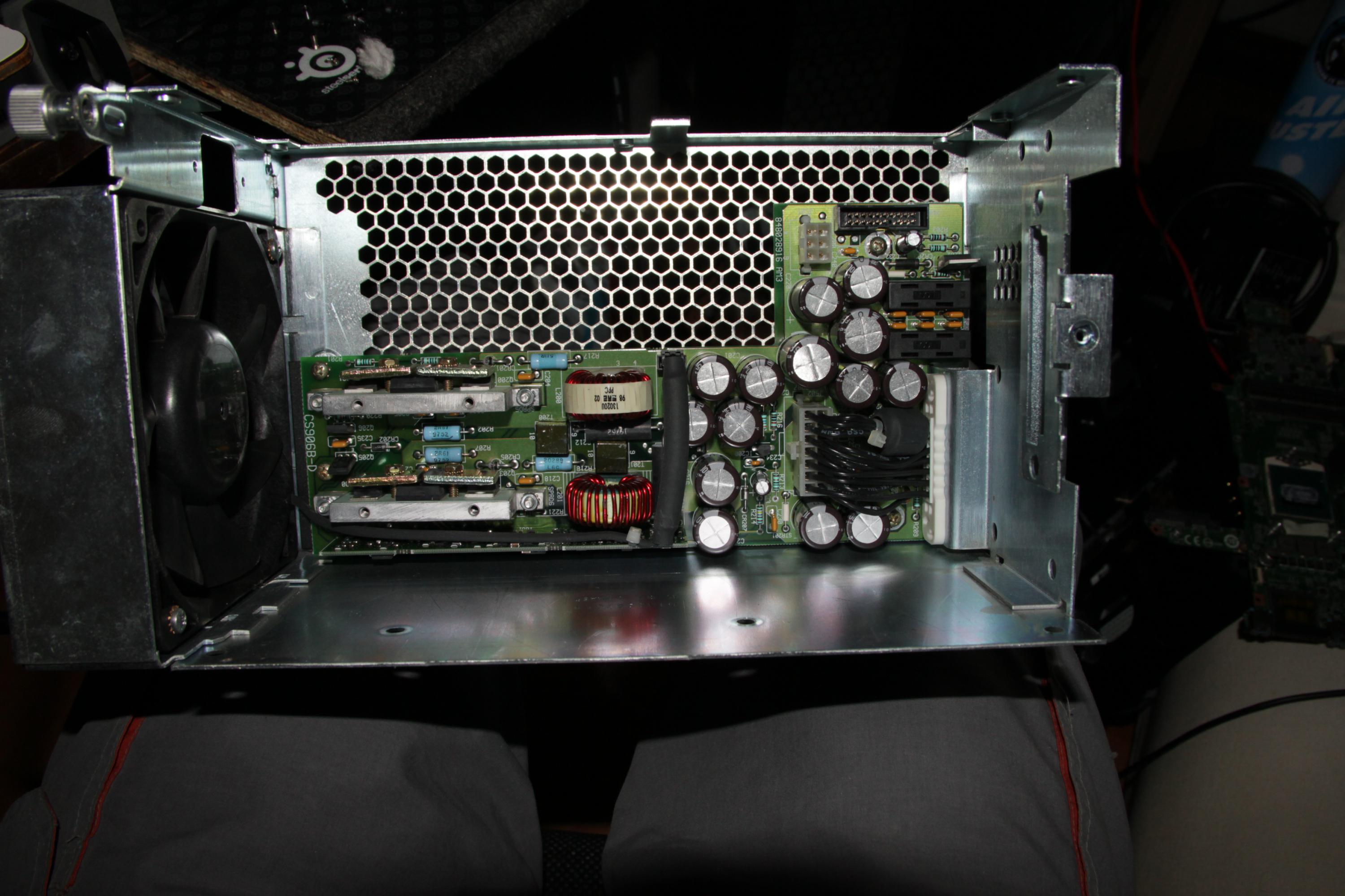 A friend brought me this Lucent PSU out of an SGI Octane (if i've understood correctly), after reported random freezes & crashes. All Japanese caps, none bloated, which turned my suspicions towards the mainboard and local VRM's.