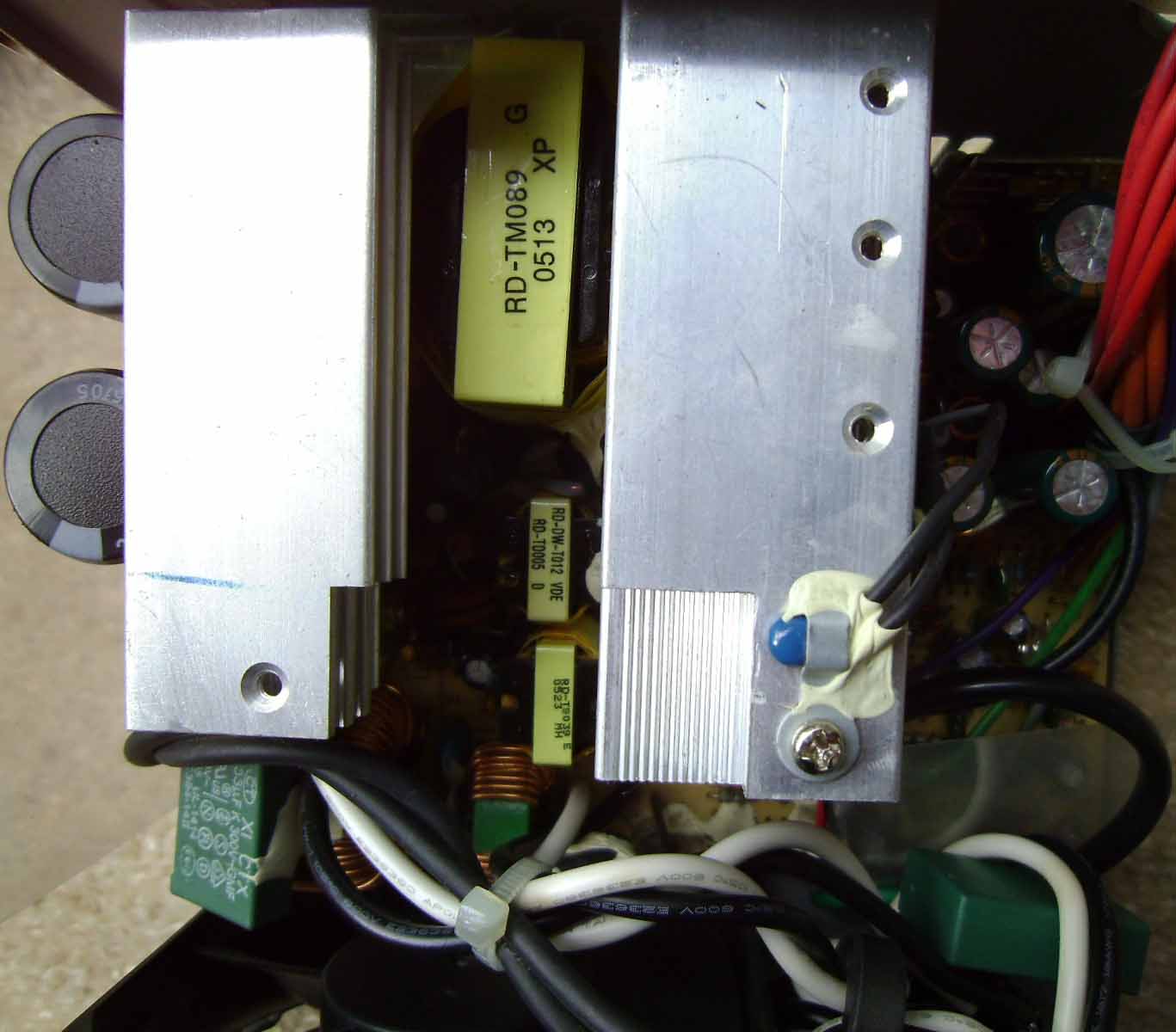 It apparently has been already recapped as 5vsb uses 1000uf 16v Panny FL (2x).Secondary caps are mostly Rubycon ZL and one MHZ,along with 2 Teapos. AC receptacle is mounted on a small PCB,presumably PPFC.
