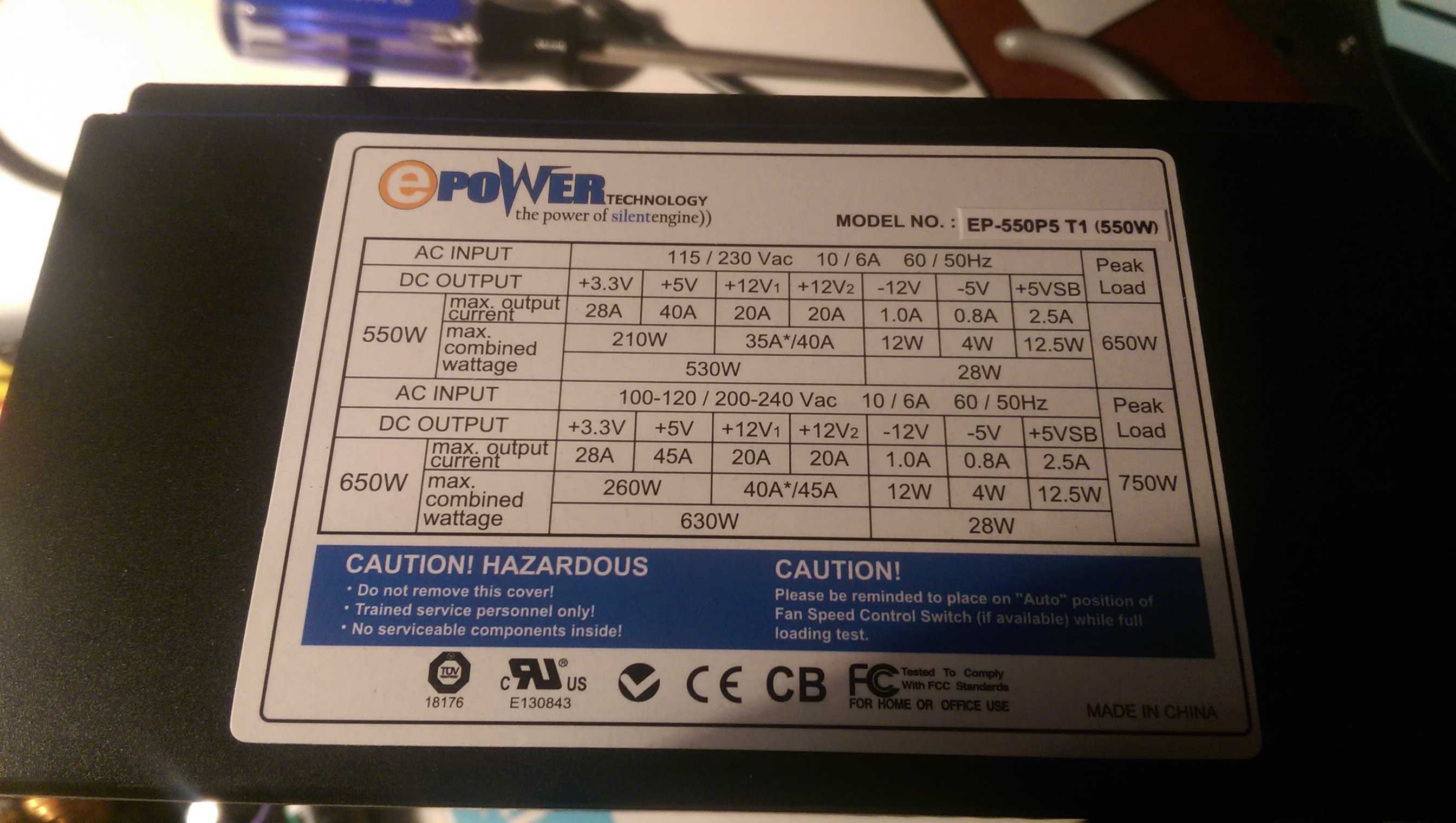 Speaking of ePower...this one has been sitting in my room for a long time so I finally decided to recap it. At first I thought this looked really overrated for 550W. But it almost seems like it could be 500W with 550W peak.
