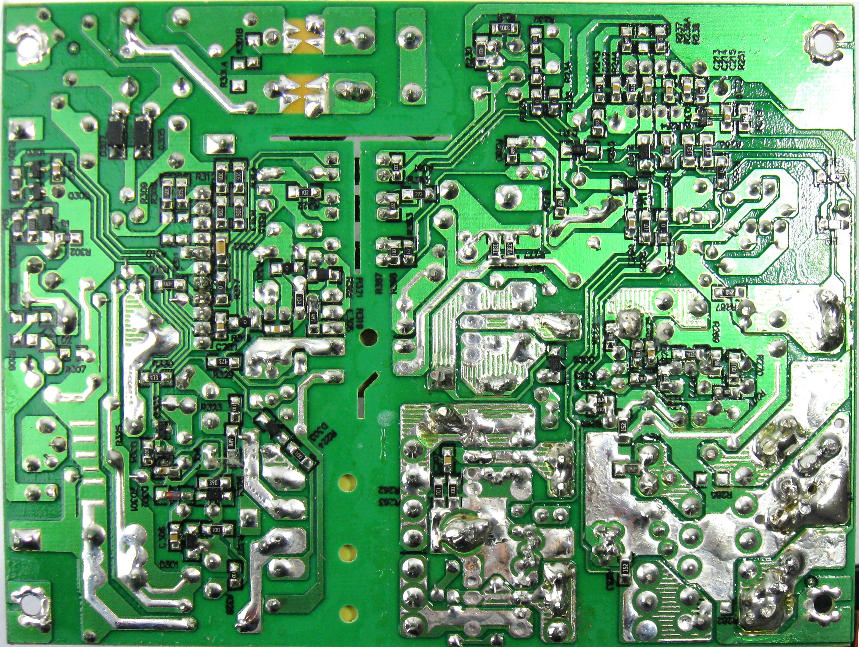 ^ Underneath that 'S' shaped aluminium heatsink besides the white glue blob resides the +5VSB PWM/switching controller, probably from the TinySwitch TNY274~280 family. As long as the PSU is plugged to the wall and switched on, the +5VSB rail will be always hot, and when the computer is turned off the fan is stopped and the +5VSB stuff can only be cooled by whatever passive convection is available, so placing a heatsink on the +5VSB controller makes a lot of sense if we think about it ...