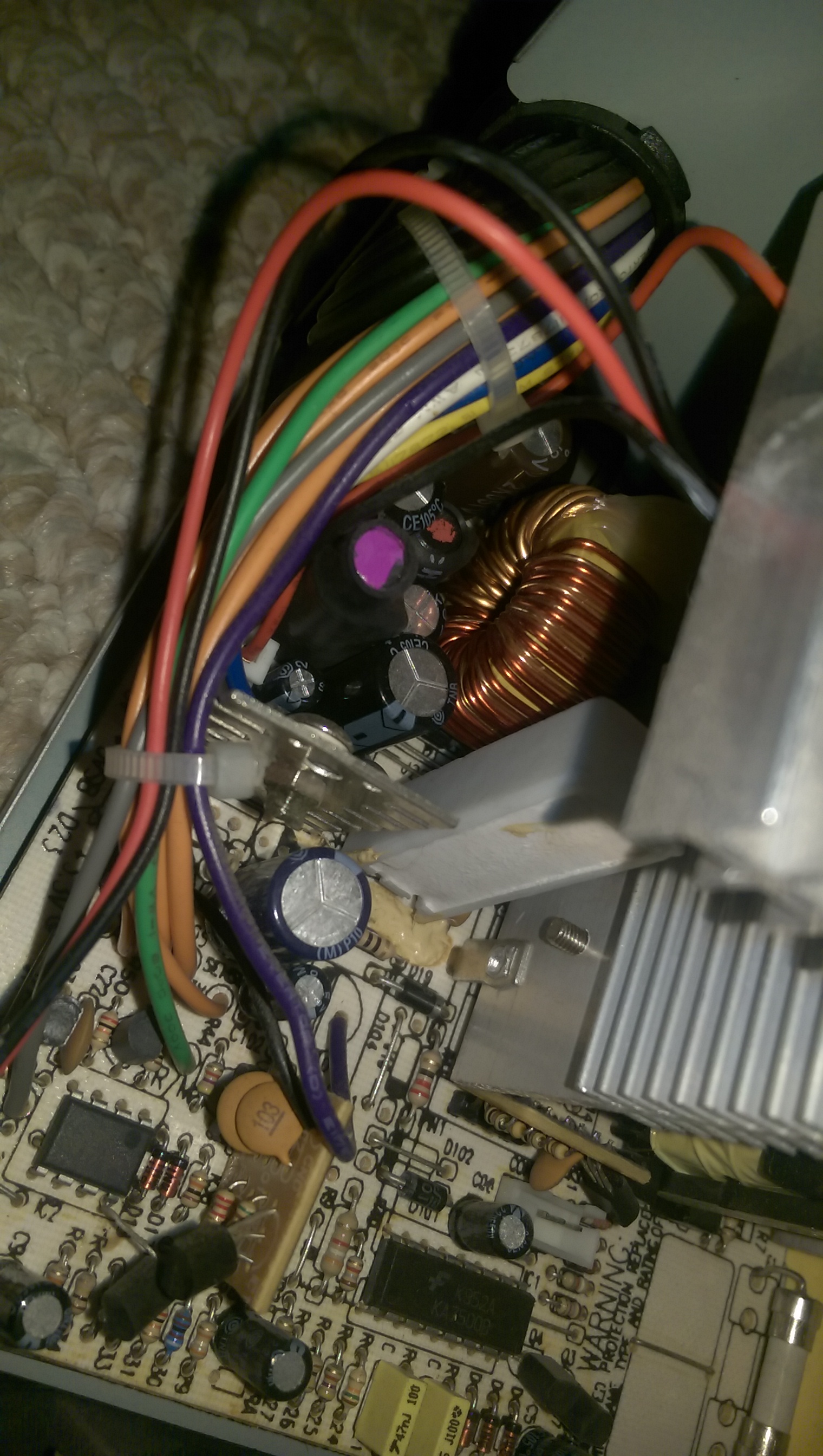 Any ideas how much this can do? It has TO-220 package 13009s(and true 13009s at that - they have the Fairchild logo)and the secondary side has 2 20A rectifiers in parallel for 5v,30A for 3.3v and I think 16A for 12v. Oh yeah,it's been recapped as well.
