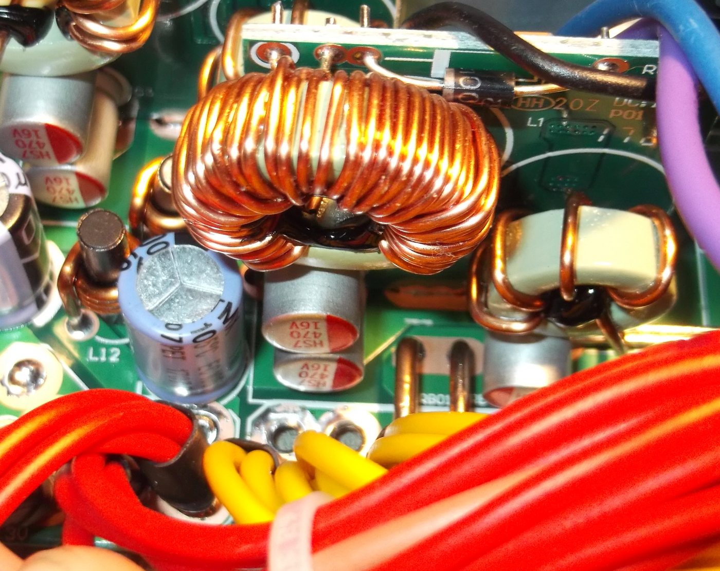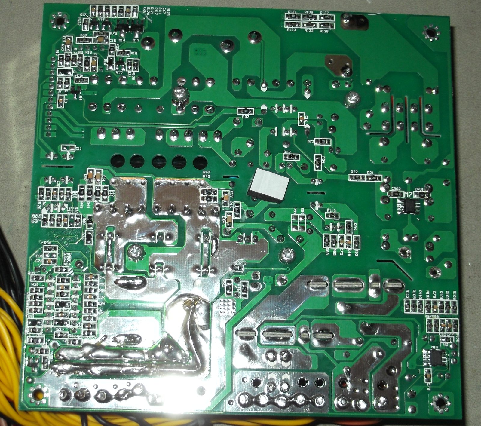 C-DC; 4x SG40N01D, unknown controler ic, 3x uknown brand 470uF 16V polimer capacitor, Asia'x TMX 1500uF 10Velectrolitic capacitor.