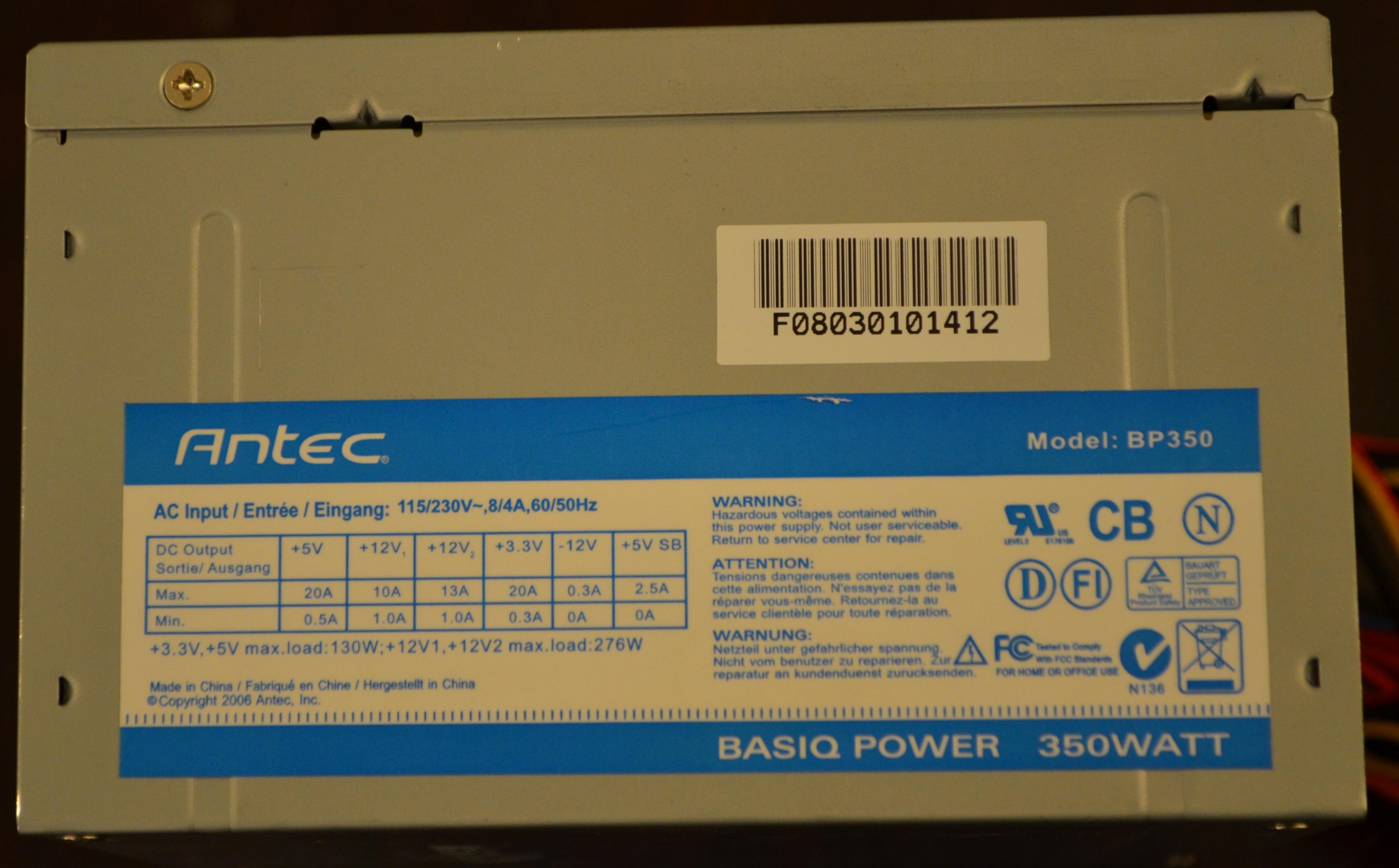 Antec BP350:12.089V, 5.1283V, 3.3509V