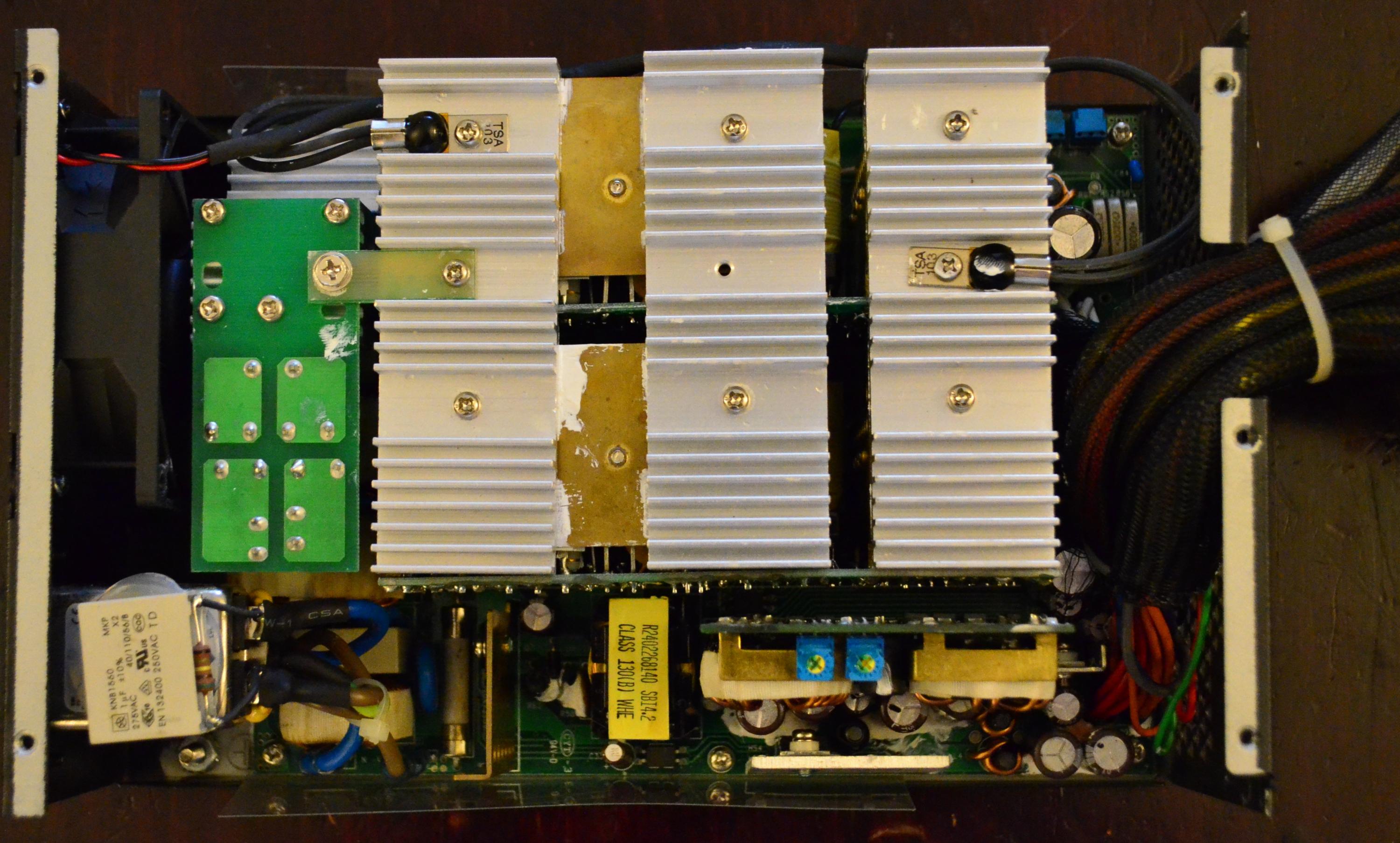 Yep, not exactly an original design either, the PC Power & Cooling Turbo-Cool 1200W (and the 1KW model that preceded it) used two 600W PSUs, though in the PCP&C each PSU is on its own separate daughterboard.
