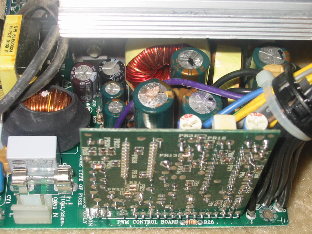 Unfortunately, what brought this PSU down was that one lone bulged cap on the 12V rail - a Teapo SC, 16V, 3300 uF with same case size as the 6800 uF caps mentioned above.