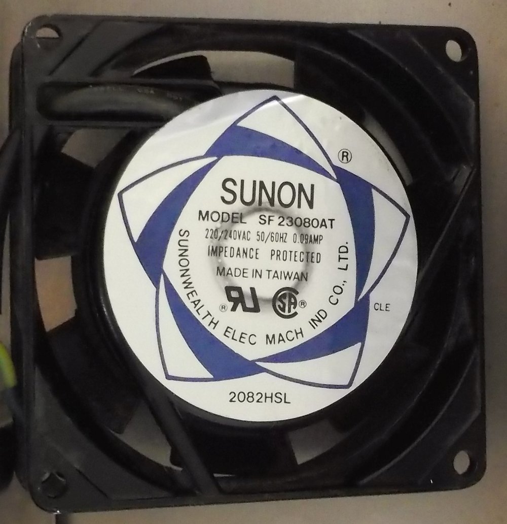 It's a DC Pixie _PXDC12D4-90_, rated for 1.5 Watts @ 12V. Ball-bearing type and made in Japan. Appears to spin freely, though I have no idea if it works or not. Same goes for the rest of the PSU. As mentioned, the owner said these “failed bench tests” many years ago, but how he tested them, I didn't ask.