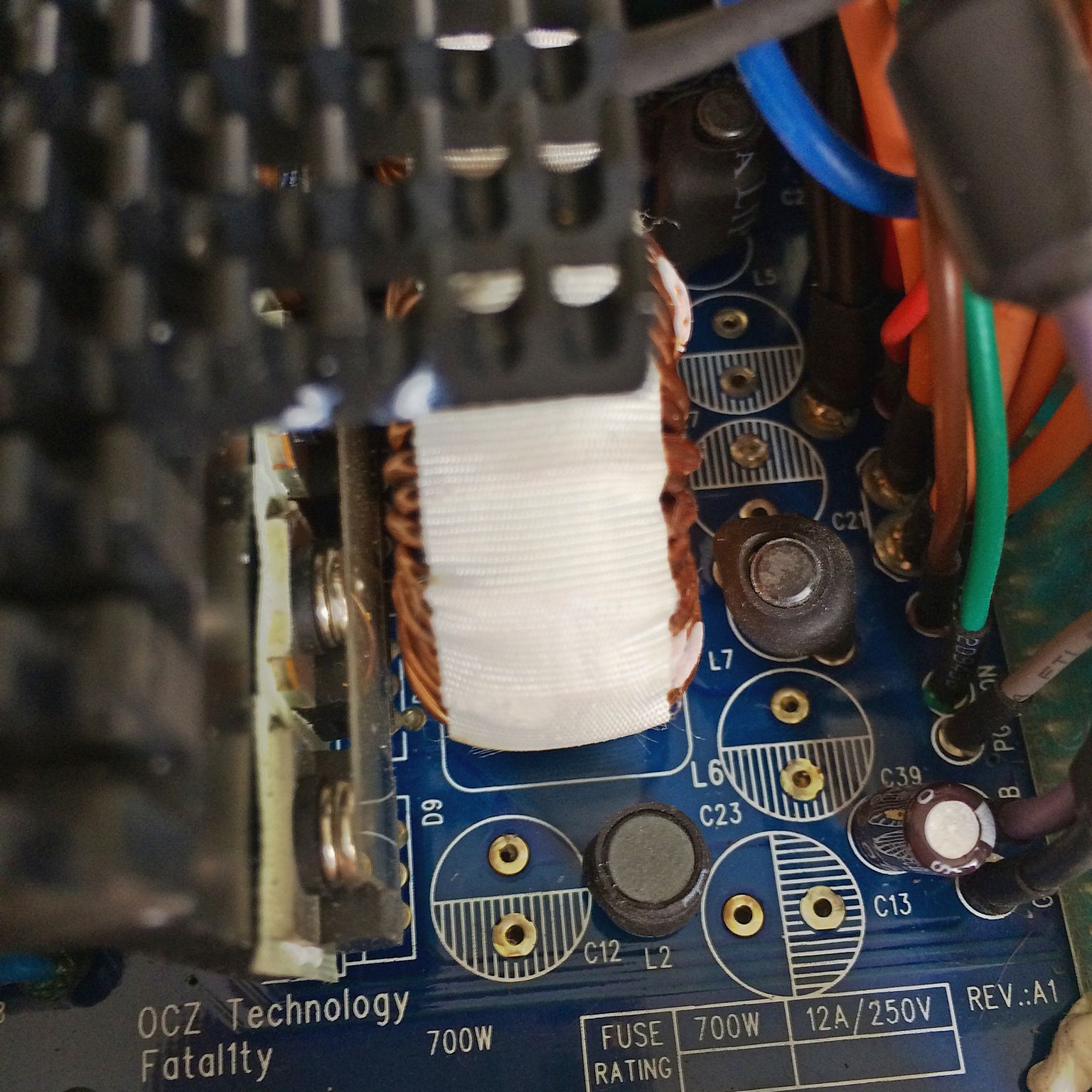 But given the dust accumulation both inside the computer it was in and the PSU itself, I can say it probably provided at least 5 years of service. Also, the motherboard in that PC had nearly every KZG cap bulged, and the board was almost exclusively done with KZG. So it's possible these helped the PSU caps fail sooner. Of course, it could be the other way around too. I guess when dealing with crap cap brands, one can never tell "whodunit first" .