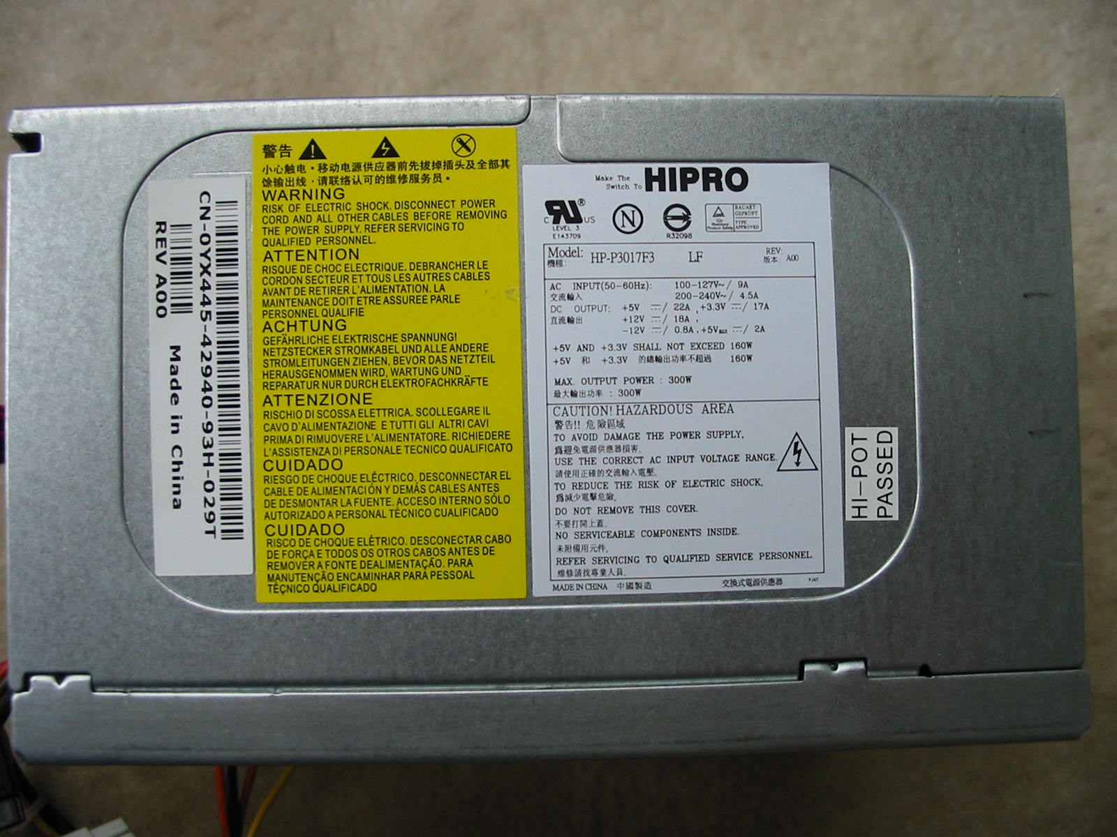 Still have reservations against the previously posted HEC Orion HP585d PSU I showed? Okay, let's compare it with something a little more standard, then. By standard, I mean an OEM unit of the same class. In this case, I picked the HiPro HP-P3017F3. It's a super-popular PSU, used frequently by many PC brands like Dell, HP, Acer, and etc. It's also a PSU I seem to get quite frequently on my bench – not because it's crap, but only because it has crap caps. So, let's have a look. First, the case, as usual: