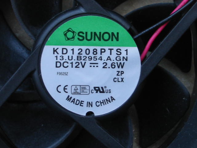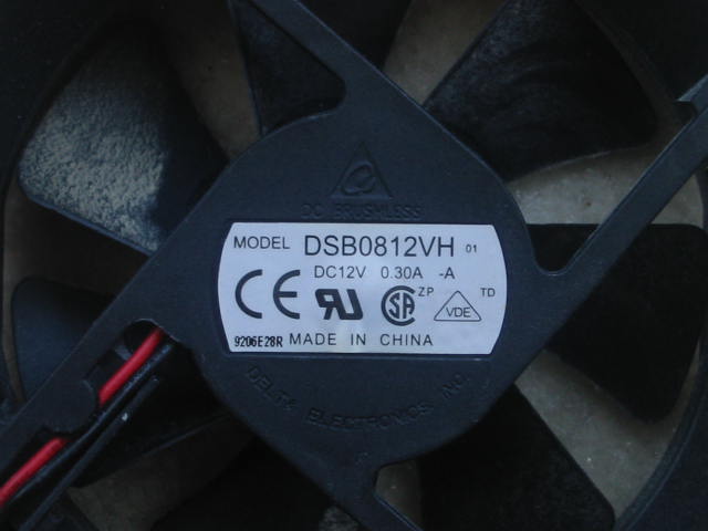 This time, it's not a Delta fan. Instead, Delta used a Sunon KD1208PTS1 80 mm fan, rated for 2.6W (about 0.217 Amps) @ 12V. Still a pretty high quality fan.
