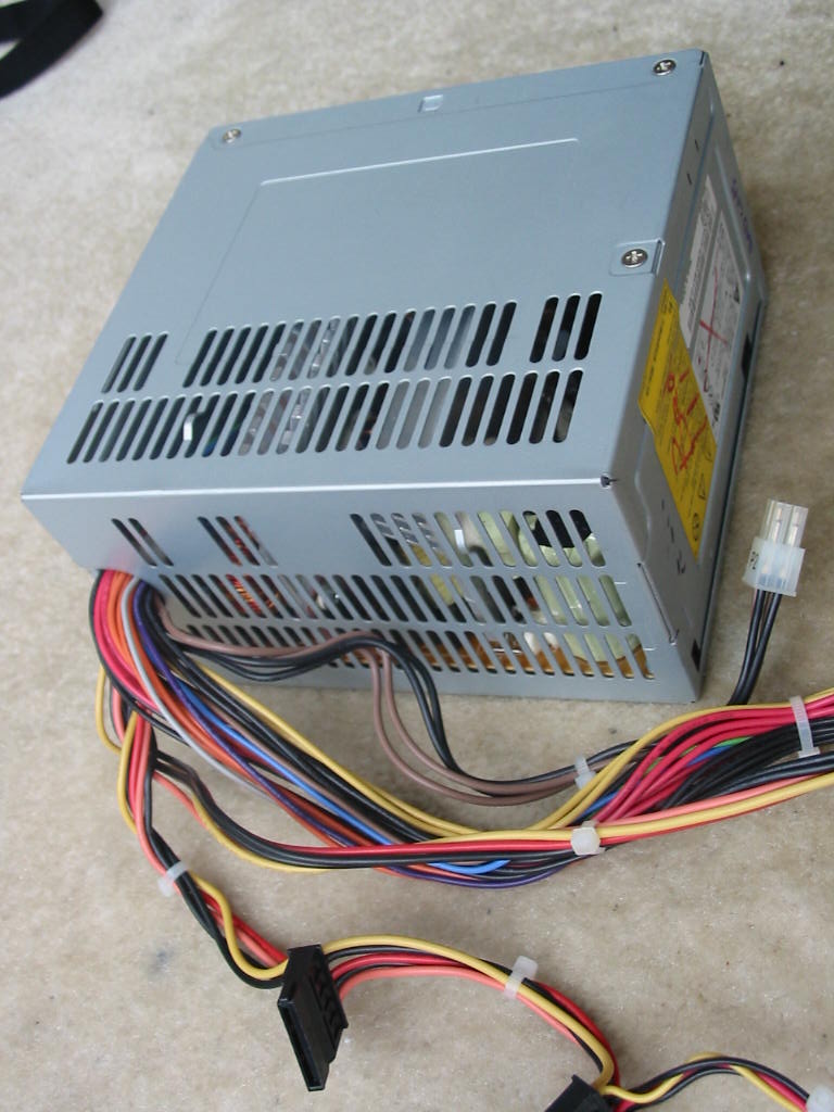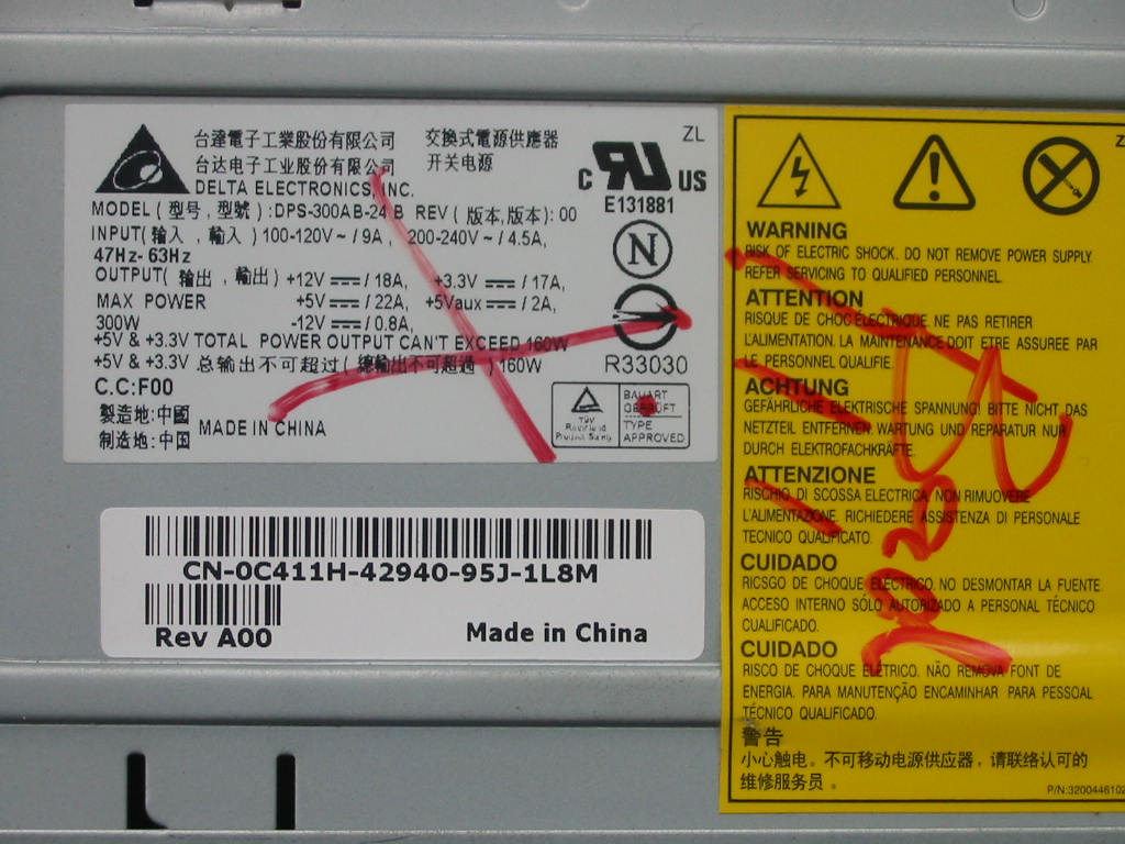 On the outside, it looks very much like the 350W DPS-350VB I posted above. The lack of 6-pin PCI-E power connector and minor differences in the label are two ways to tell them apart. Also, as you can see on the label, someone wrote “BAD” on it. Foreshadowing of what the issue might be??