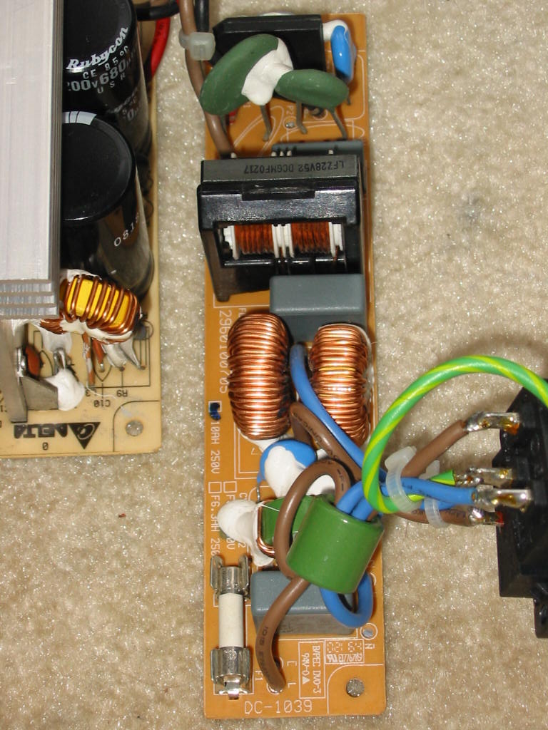 And caps… and a 2nd PCB specifically for EMI/RFI filtering. I think I need to take it apart further to see more details. First, the EMI/RFI board: