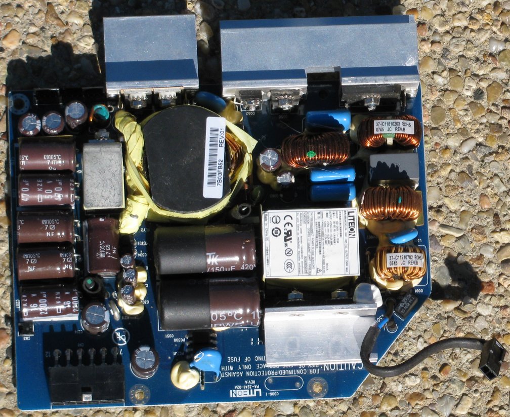 I also picked up a Newton 200w computer PSU (out of a Fujitsu-Siemens box), with ACTIVE PFC Visible through the grills are a Rubycon primary cap, and Nichicon Ltec on the secondary. Fan's a Delta. Might post pics later today.