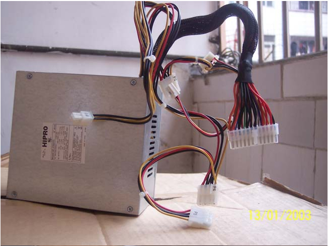 Not to be redundant, but attached is a better look at the PSU I posted in May. These images aren't mine but images of the PSU found on a Google image search link. The PSU in question is a (RoHS compliant, from the logo on the label) Hipro 300W, or a HP-P3527F3. No PFC in this PSU and only 470uF/200V primary capacitors (Teapo @ 85C), with otherwise what looks to be a mingling of Teapo, (maybe) Su'scon, Ltec, and (maybe) G-Luxon capacitors. There's 32A on the 5V rail, 20A on the 3.3V rail, 16A on the 12V rail, 0.8A on the -12V rail, 0.3A on the -5V rail, and 3A on the 5VSB rail. 165W is the combined wattage of the 5V and 3.3V rails and 280W is the combined wattage of the 12V, 3.3V, and 5V rails together. It does say maximum output 300W but nowhere on the label does it say that continuous. The fan looks to me like it's a 80mm (80x80x25/12VDC) ADDA sleeve bearing (I didn't check, as yet, but probably a medium speed from what the airflow feels like from the grille so I'm guessing that means 2440RPM/31.4CFM and a static air pressure of .114"). Also, my 20-pin connector is not sleeved like the one in the added image. And I'm not sure the date on the image is correct either (if this PSU is RoHS compliant it'd have to be from 2005 or 2006). Does this PSU look underspec'd or subpar to anyone for one rated at 300W (right now it's powering a Pentium 4 2.66 GHz w/1GB of DDR266 RAM, a 40GB Seagate/80GB Samsung, an underclocked Radeon 9500 Pro, a Sound Blaster Audigy Gamer, a Promise Fasttrak ATA100 card, a floppy drive, a 2450RPM/80mm/33CFM AVC sleeve bearing case fan, and two DVD-+RWs)?