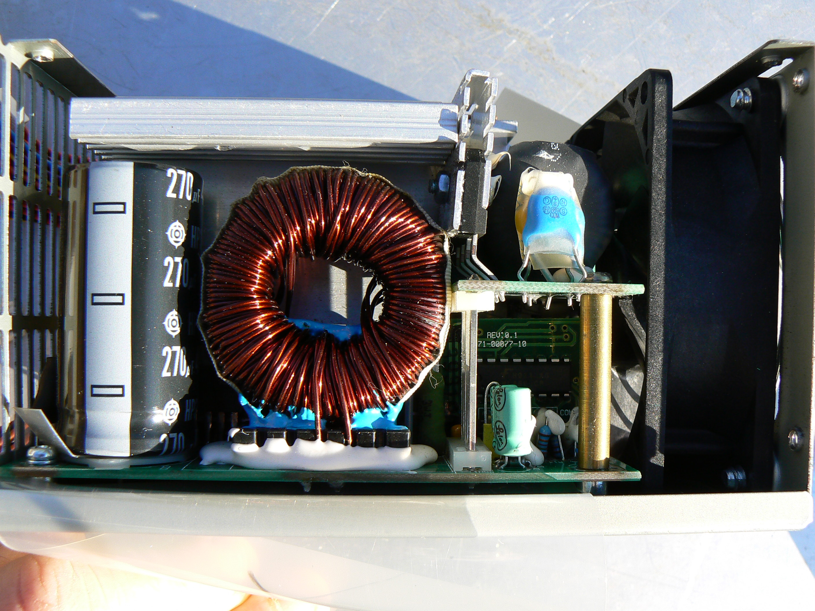 Passive PFC inductor is bolted to the removable half of the case (on the 350W it was bolted to the non-removable half), and looks very similar to the 350W model.