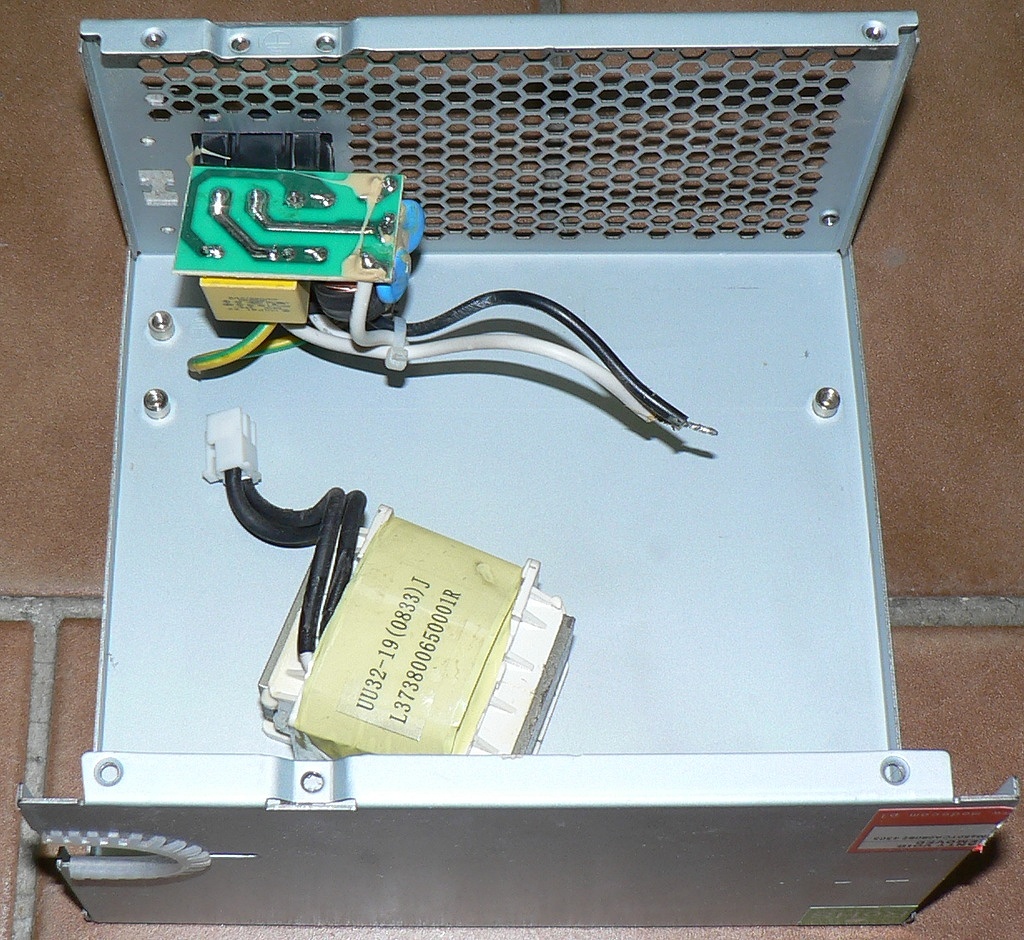 I actually like the looks of that power supply. It could definitely use a recap and some better heatsinks if the fan is no good. That is one big diode on the stand by I like how they didn't even bother to put the combined 12V output on the label and not even the max output for the -12V or 5VSB. i think that thing would probably be good for around 330W? Probably do 400W with some 820uF input caps. I may be missing it but is there not even a spot to put on MOV on the primary side?
