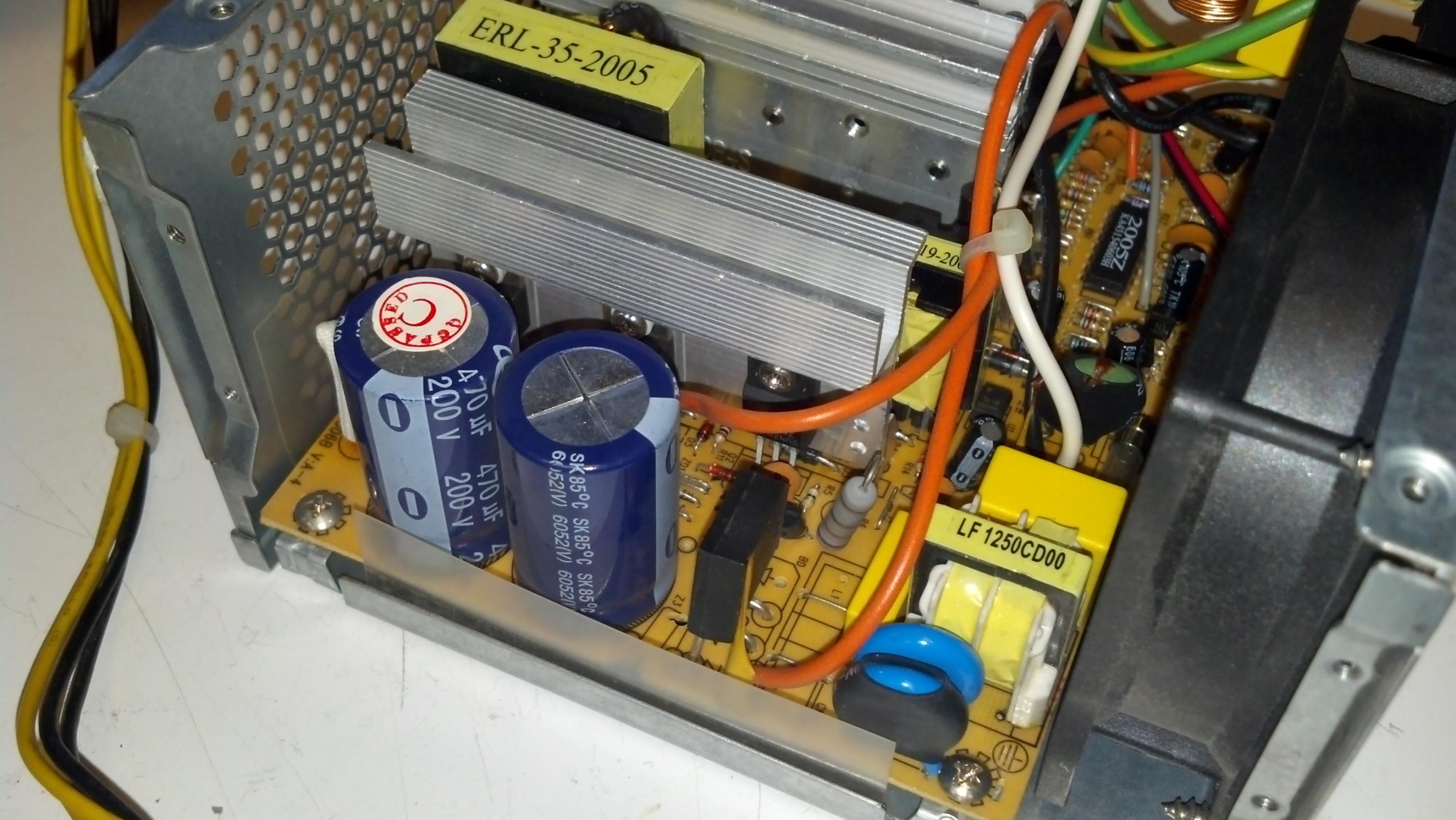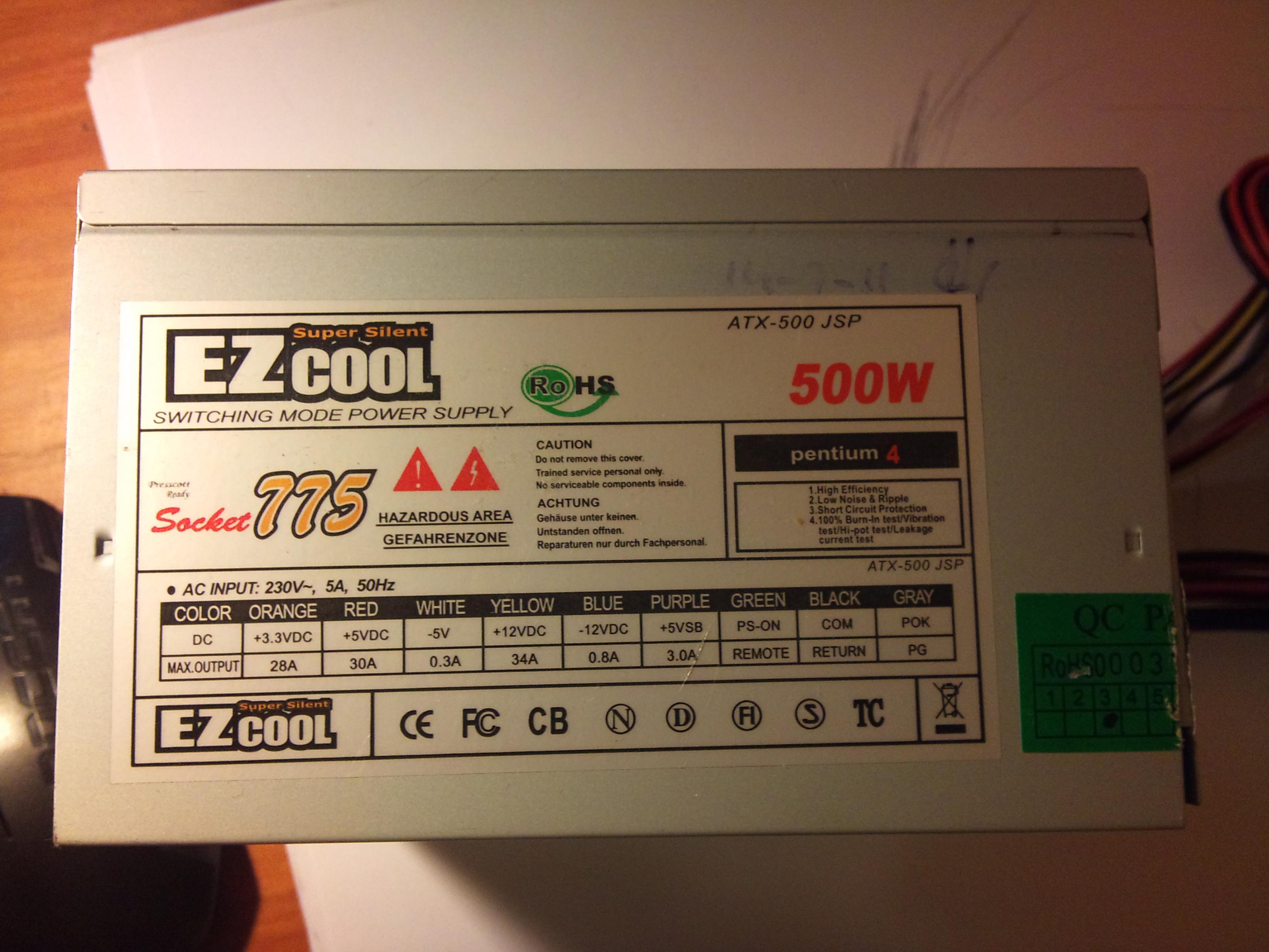 Actually i don't know, it tested ok in a system based on celeron 420 1gb ram onboard video and only 1 hdd but when installed in another system: ECS AM2+ motheboard, Athlon 64 X2 7550, 7600GT VGA, 4GB RAM, 2 SATA HDD and a DVD-RW it shutdows immediately, I pulled the PSU out of the case and shorted it's 12V rail to test if the shutdown came from motherboard or PSU protection and was surprised to see that it really came from PSU.