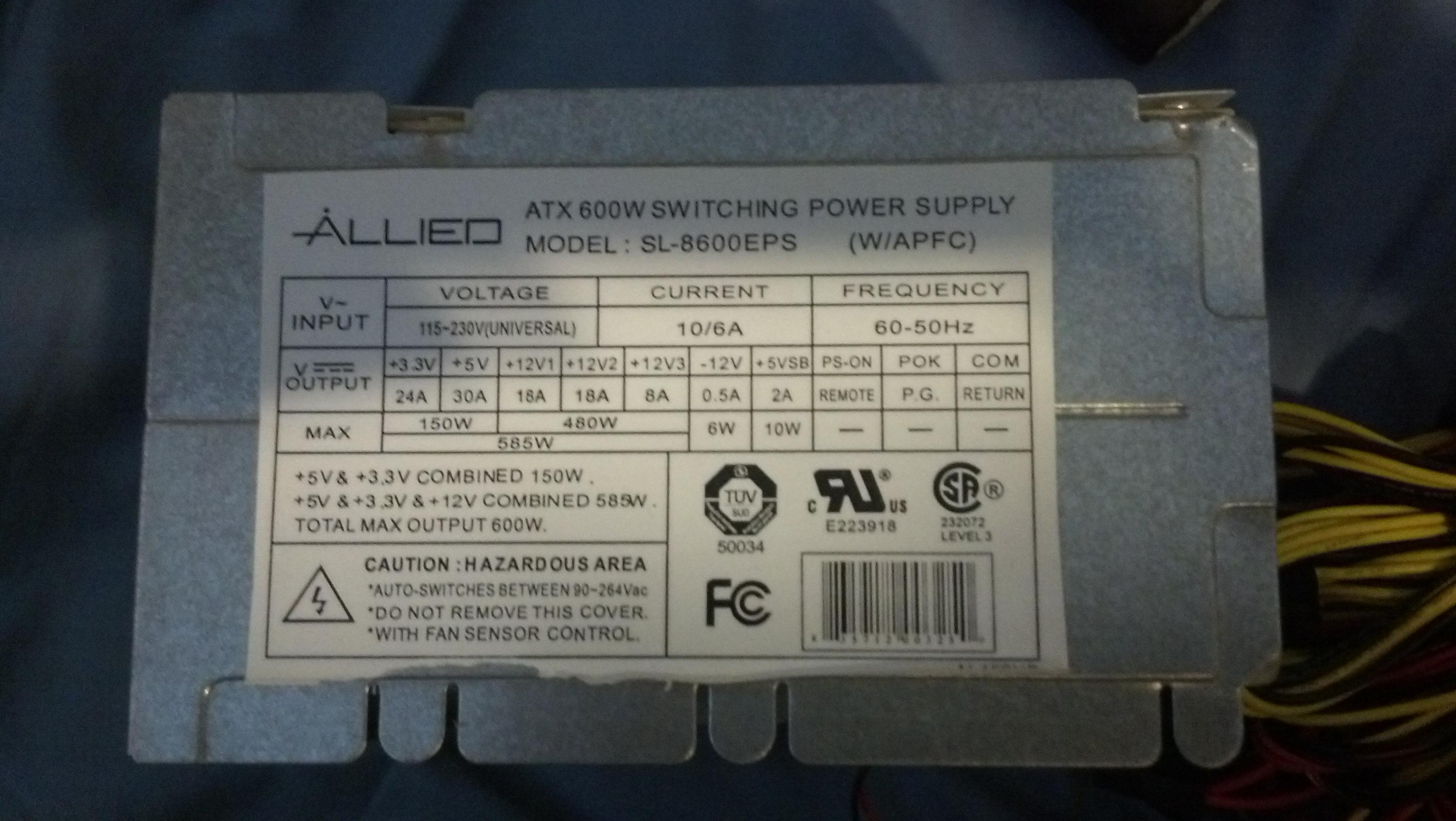 No worries, it's the HP-P3527F3... which is my exact model (except mine has a manufacture date of May 2006 and yours May 2007, and both are the lead free versions I believe), meaning it has a high speed sleeve bearing fan from ADDA. If it has SATA connectors and a 24-pin ATX connector, then it's the HP-P3527F3W.Last edited by Wester547; 04-28-2013, 10:55 PM.Comment