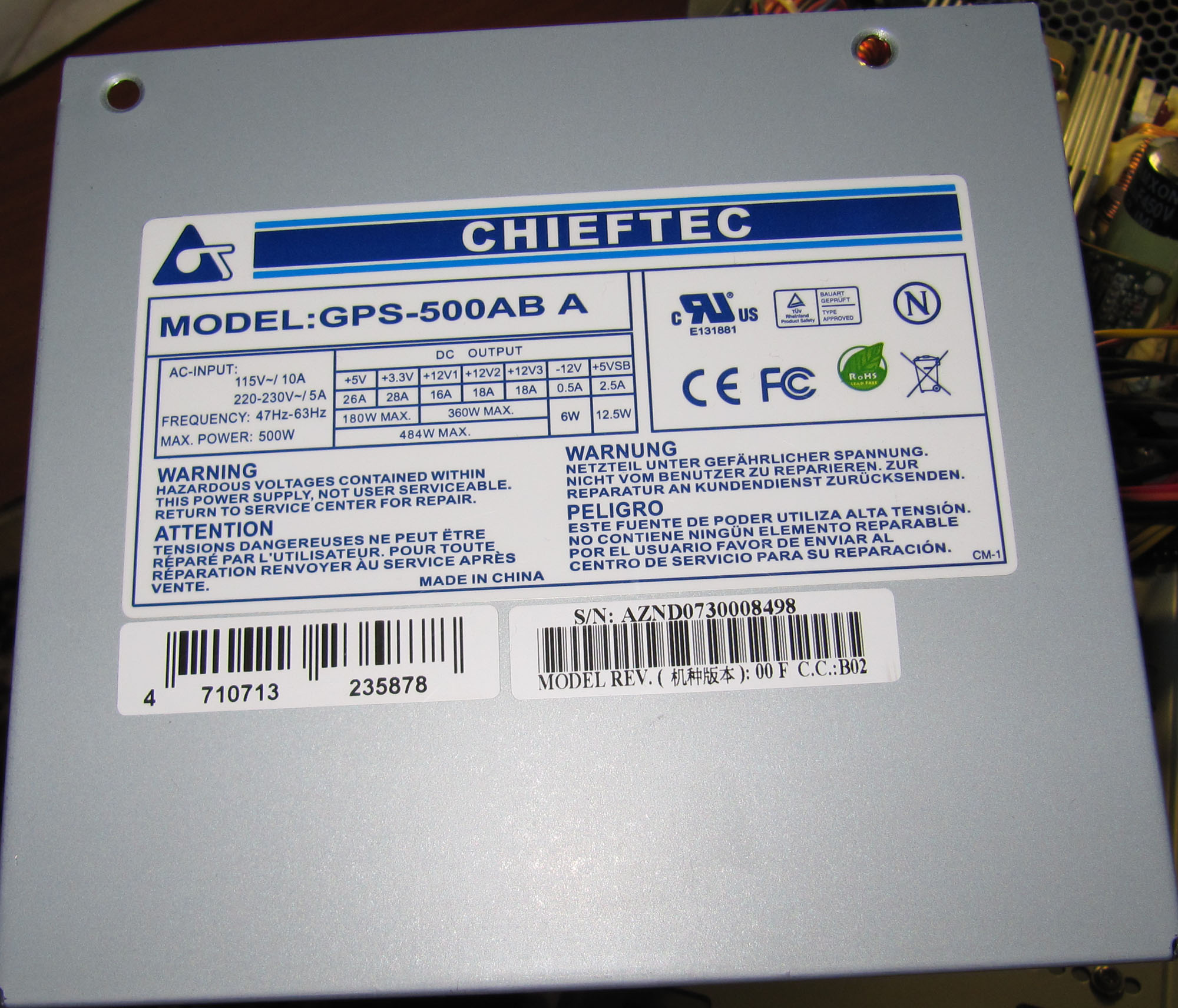 I did similar, 400W model couple days before. Besides the Samxon on primary it was full of crap, Capxon on +5 V SB was bulged. It was basically Delta PSU, they used the same model number and just placed Chieftec there