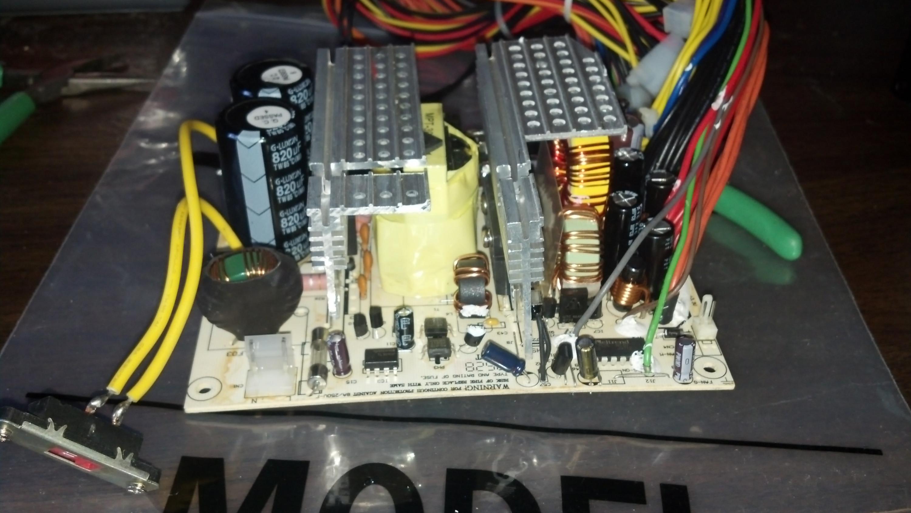 My friend said he'd give me $40 for a reliable 300W PSU, so I grabbed this Pixxo out of the bin at work and recapped it. Can't figure out the OEM. It had Asia X capacitors, replaced them with good parts but I used 680uF Fhy on the primary. Sorry I didn't snap a pic but this PSU implements the Viper22A. I think this will work well for him. Double forward with 14A FET's, 30A on the minor rails and what looks like two 12V rails with OCP, each schottky at 20A. has a really quiet fan. Also, I added that wimpy heatsink to the bridge rectifier, just because it was lying around