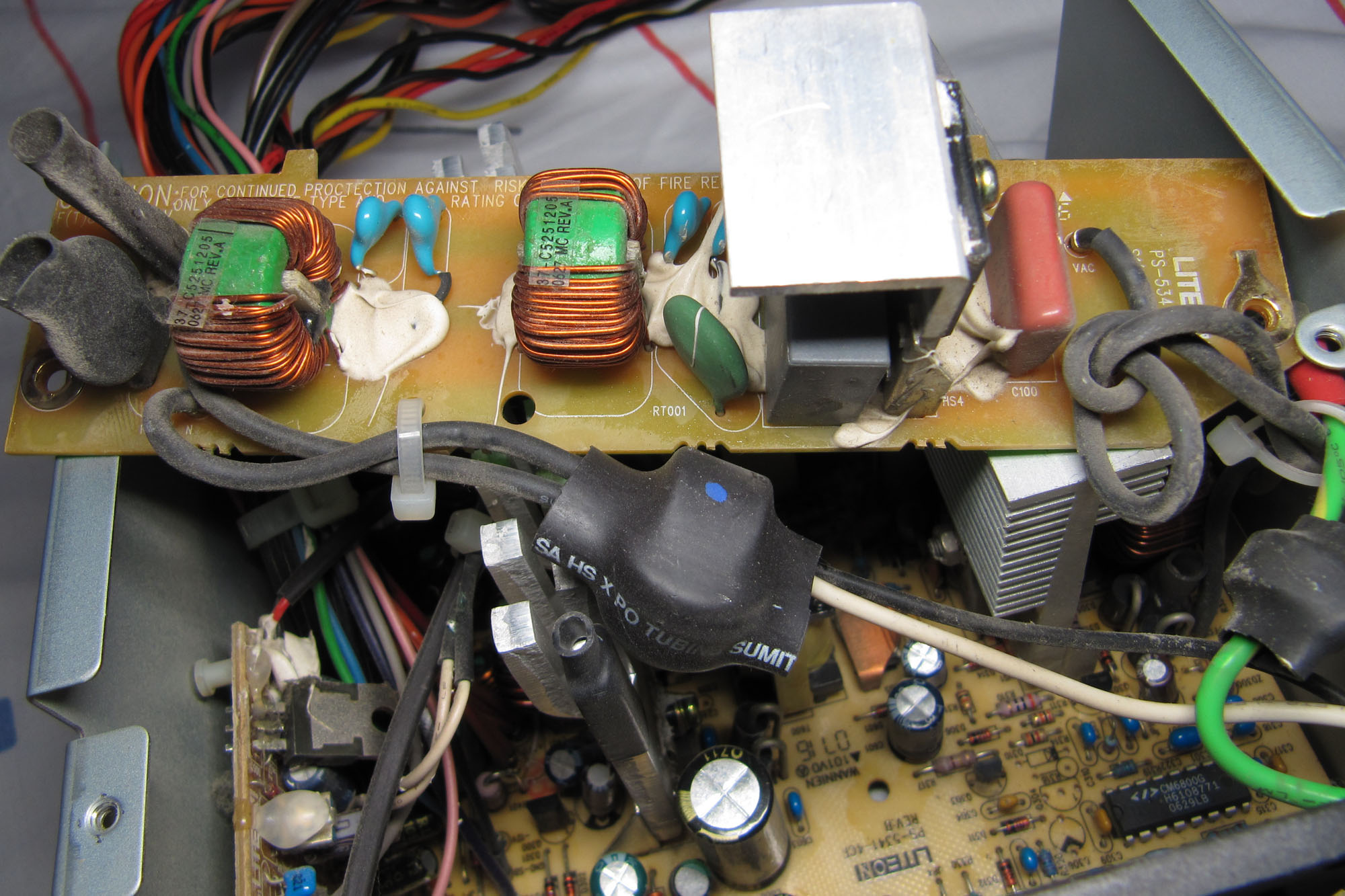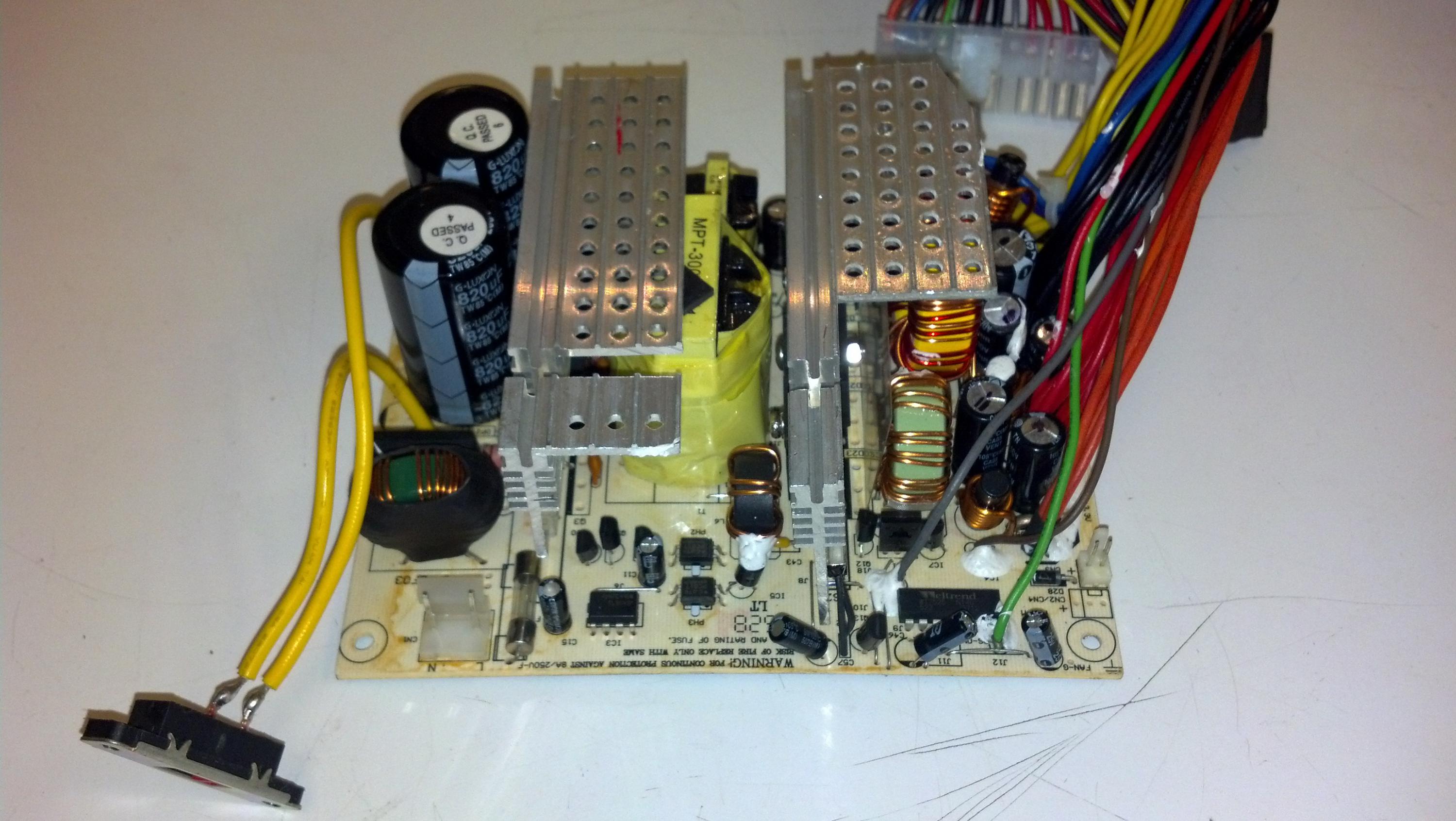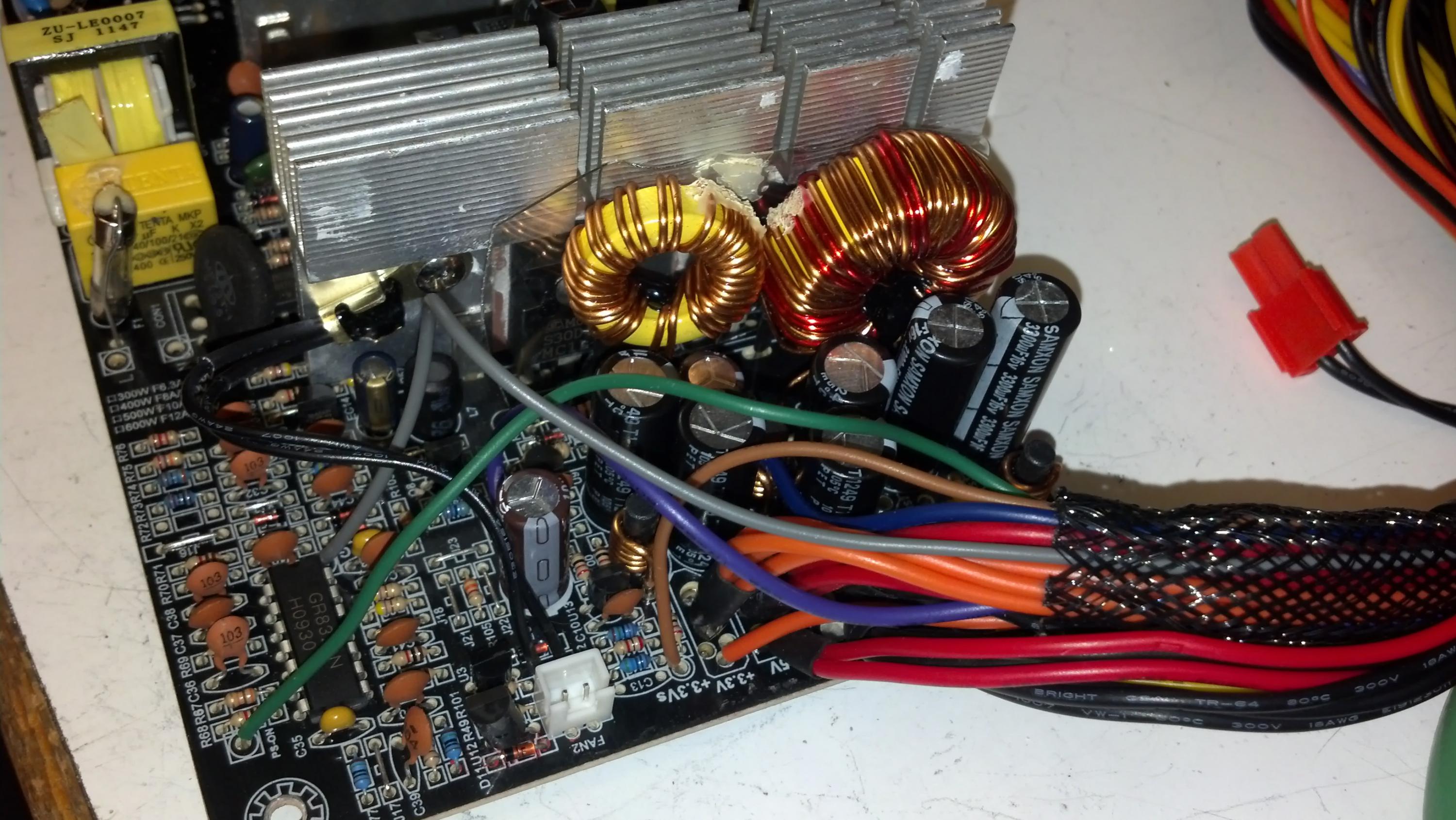 My friend said he'd give me $40 for a reliable 300W PSU, so I grabbed this Pixxo out of the bin at work and recapped it. Can't figure out the OEM. It had Asia X capacitors, replaced them with good parts but I used 680uF Fhy on the primary. Sorry I didn't snap a pic but this PSU implements the Viper22A. I think this will work well for him. Double forward with 14A FET's, 30A on the minor rails and what looks like two 12V rails with OCP, each schottky at 20A. has a really quiet fan. Also, I added that wimpy heatsink to the bridge rectifier, just because it was lying around