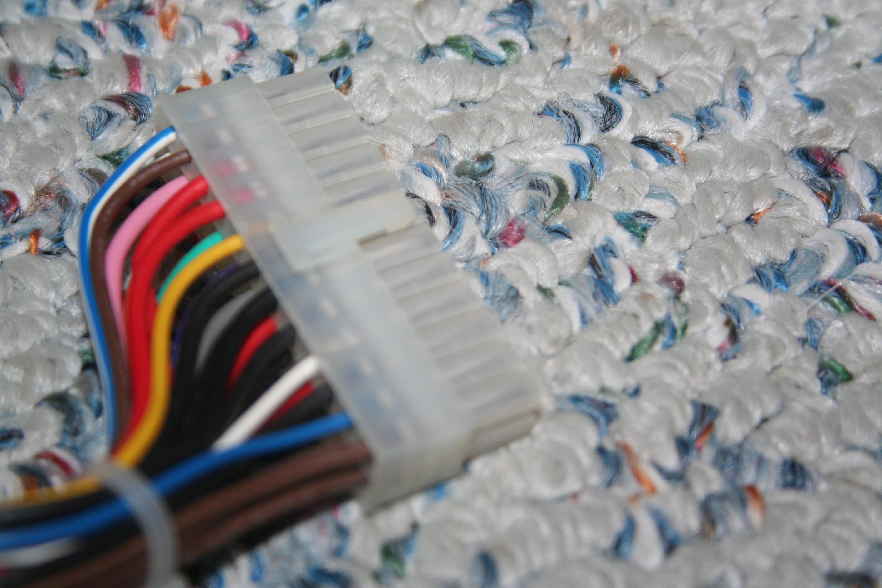 Now, this unit doesn't have a standard color scheme. Orange is +12 instead of +3.3, and brown is +3.3 here. And it has a 24-pin main connector! Of course, it's a different pinout than today's 24-pin, but still cool that a larger ATX connector existed back in 1999.