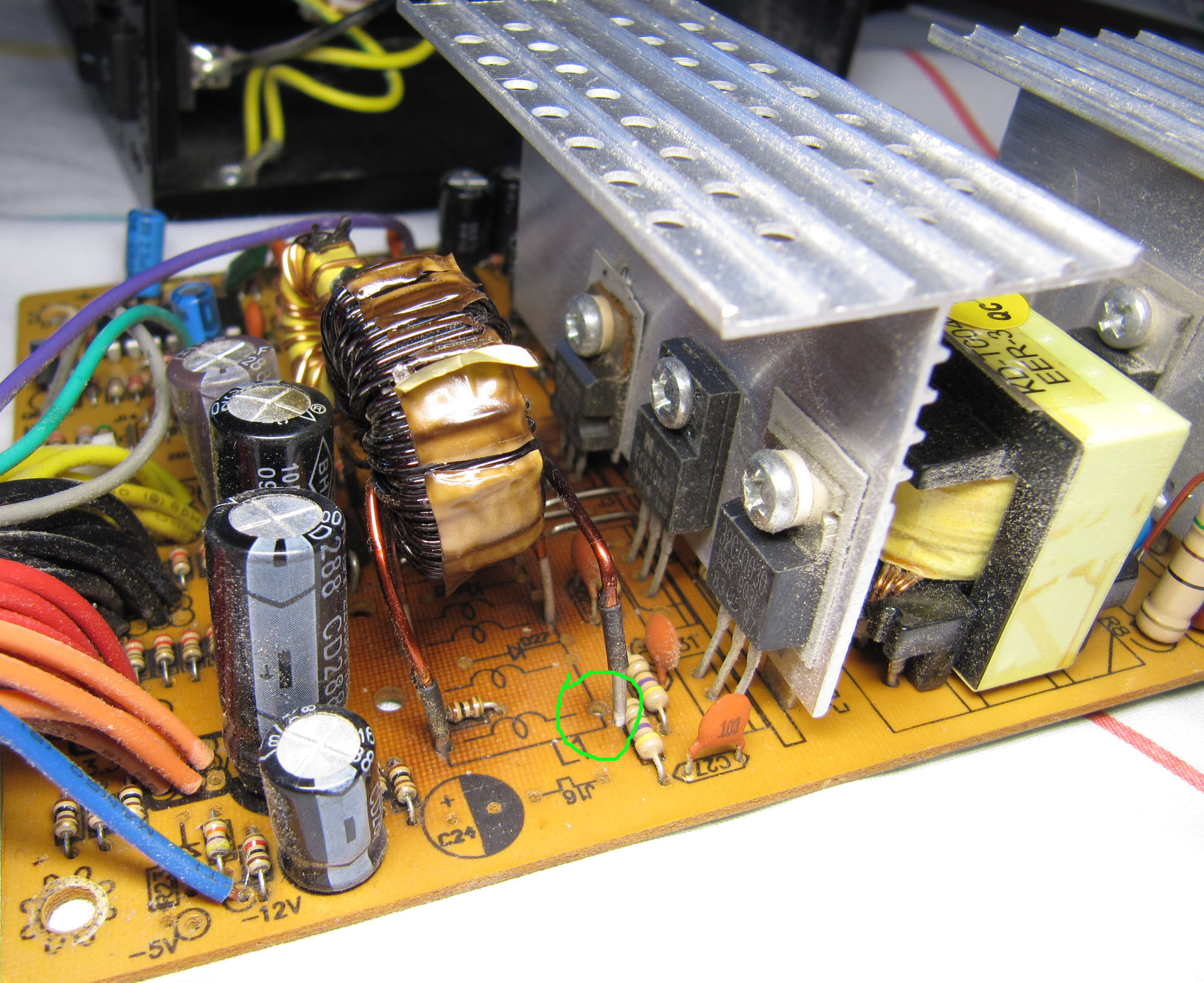 -No mag amp coil for 3.3V! The main transformer has an extra output for 3.3V The burnt toroid coil regulates both 5V, 12V and 3.3V! Have you seen something like that before? The small toroid coil is jumpered from PCB, just like the PPFC connector! Can anyone explain why?