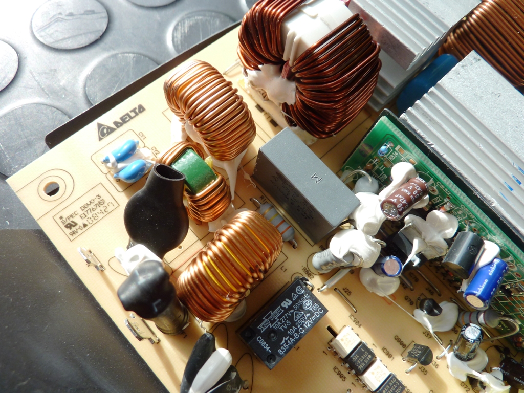 As you would expect from Delta, the components are of excellent quality and only Tier1 suppliers! Strictly Nichicon and Rubycon capacitors, heavy alloy cooling blocks, loads of coils and toroids, a proper shielded filter for the mains connection... See for yourselves and imagine a world where all PSUs are built this way:Comment