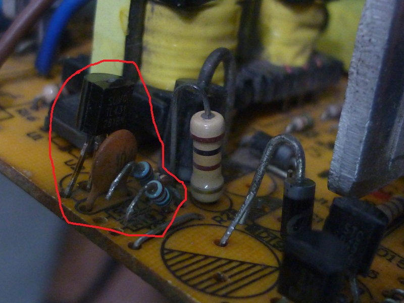 Last instance, replace TL431, same case, replace ceramic capacitor 104, same case.