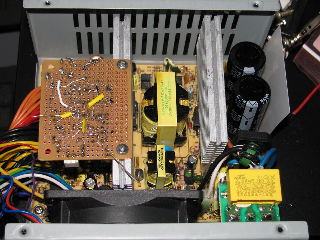 Right now it's running from a breadboard, but hopefully I'll be able to assemble it onto a PCB and install it into a power supply. I priced everything out on digikey - the total comes to $4.13, not including a circuit board. Then you'll have 10 resistors left over (minimum order quantity is 5).