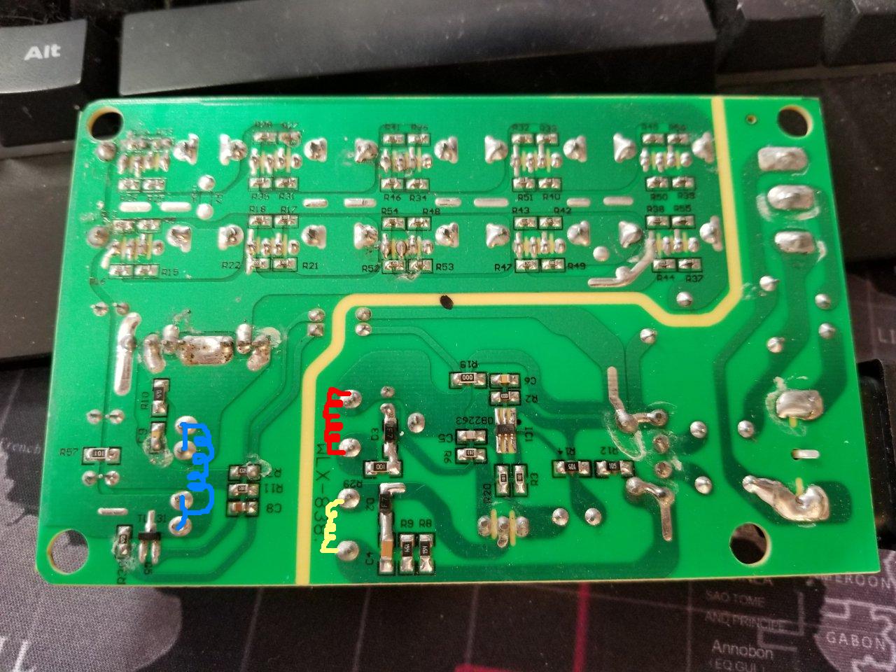 Anyways I have never troubleshooted a USB Charger...do not see a ground mentioned on the board...Its sloppy/dirty on the back...