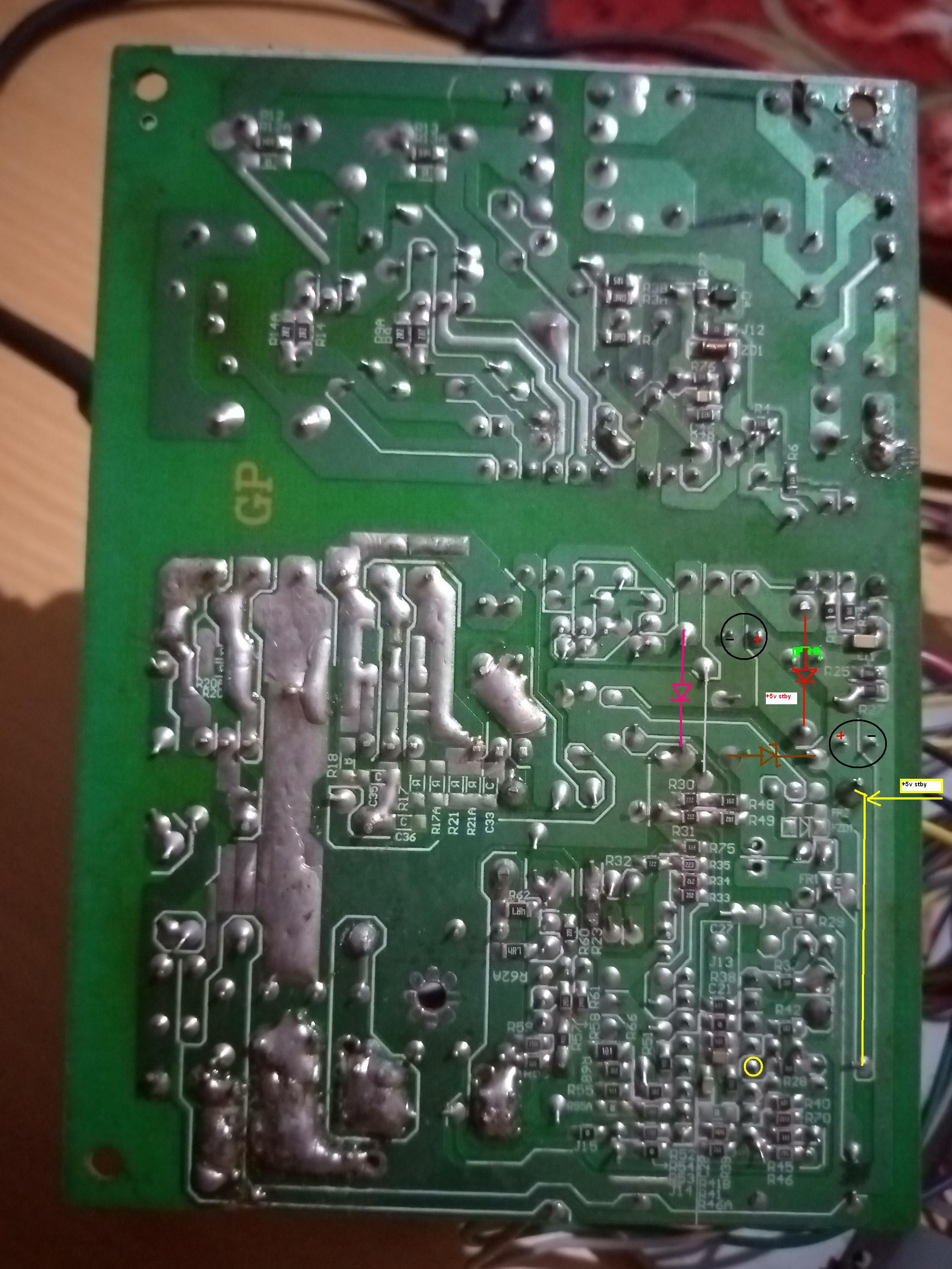 If you have this voltage, check that large resistor at the end of the heatsink (next to the board number) if it is ok, I would replace both the small electrolytcs between D2 and that small transformer, they are likely bad (due to heat)Last edited by R_J; 02-21-2020, 12:06 PM.Comment